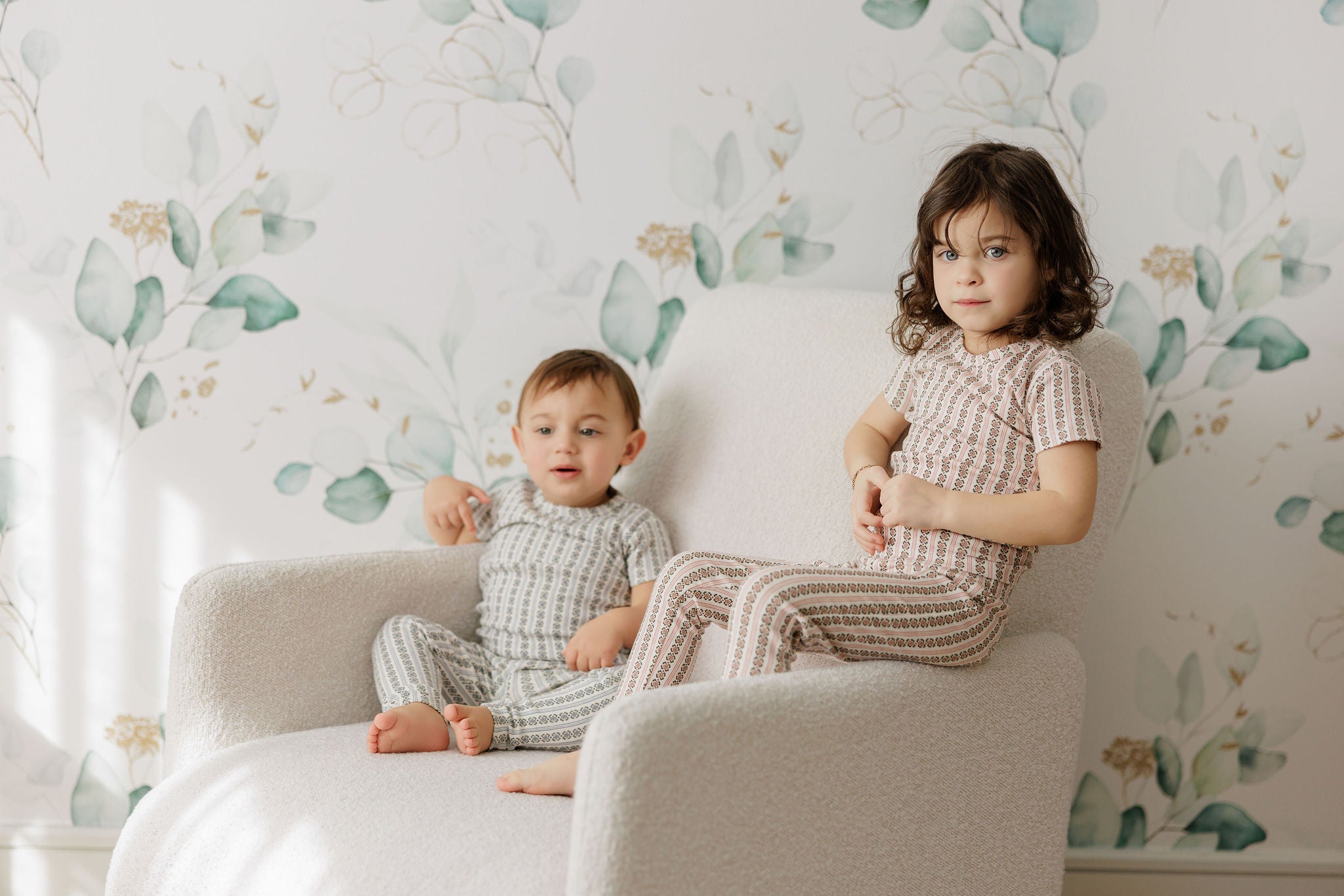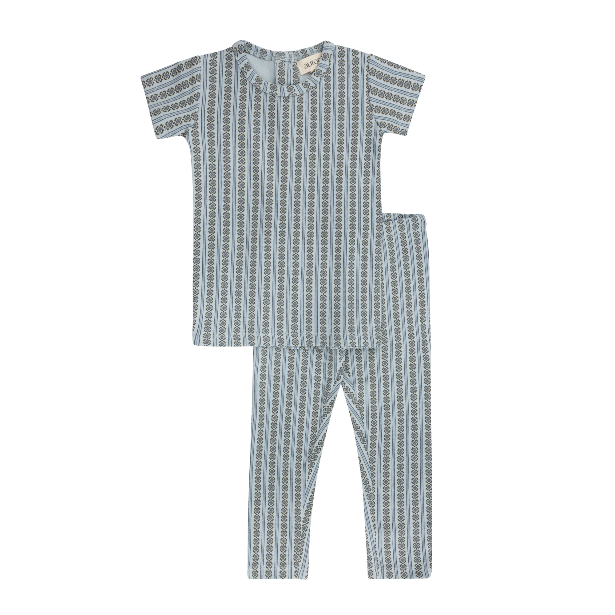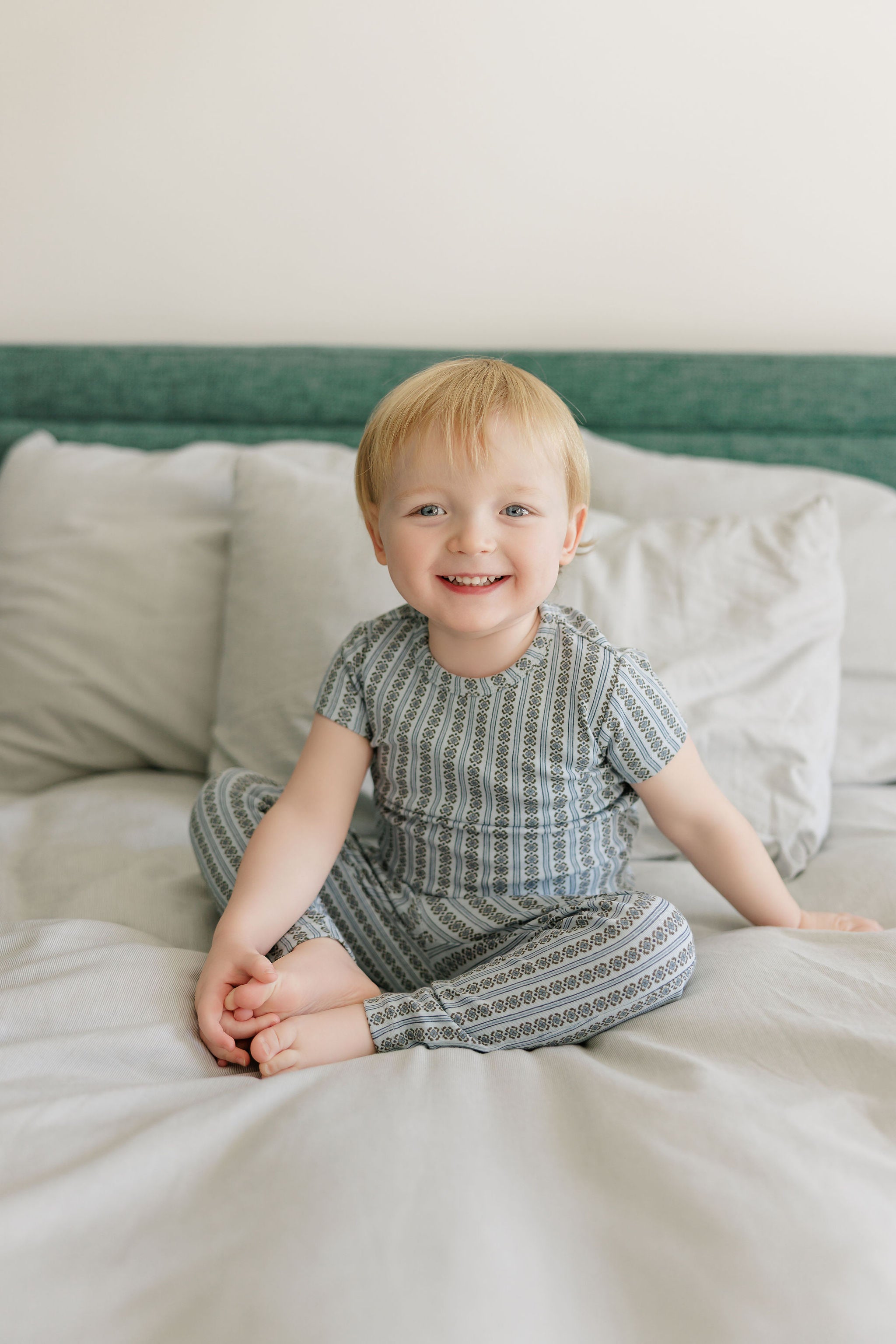 Boys Pajamas – Ivory Blue – Linear Leaf