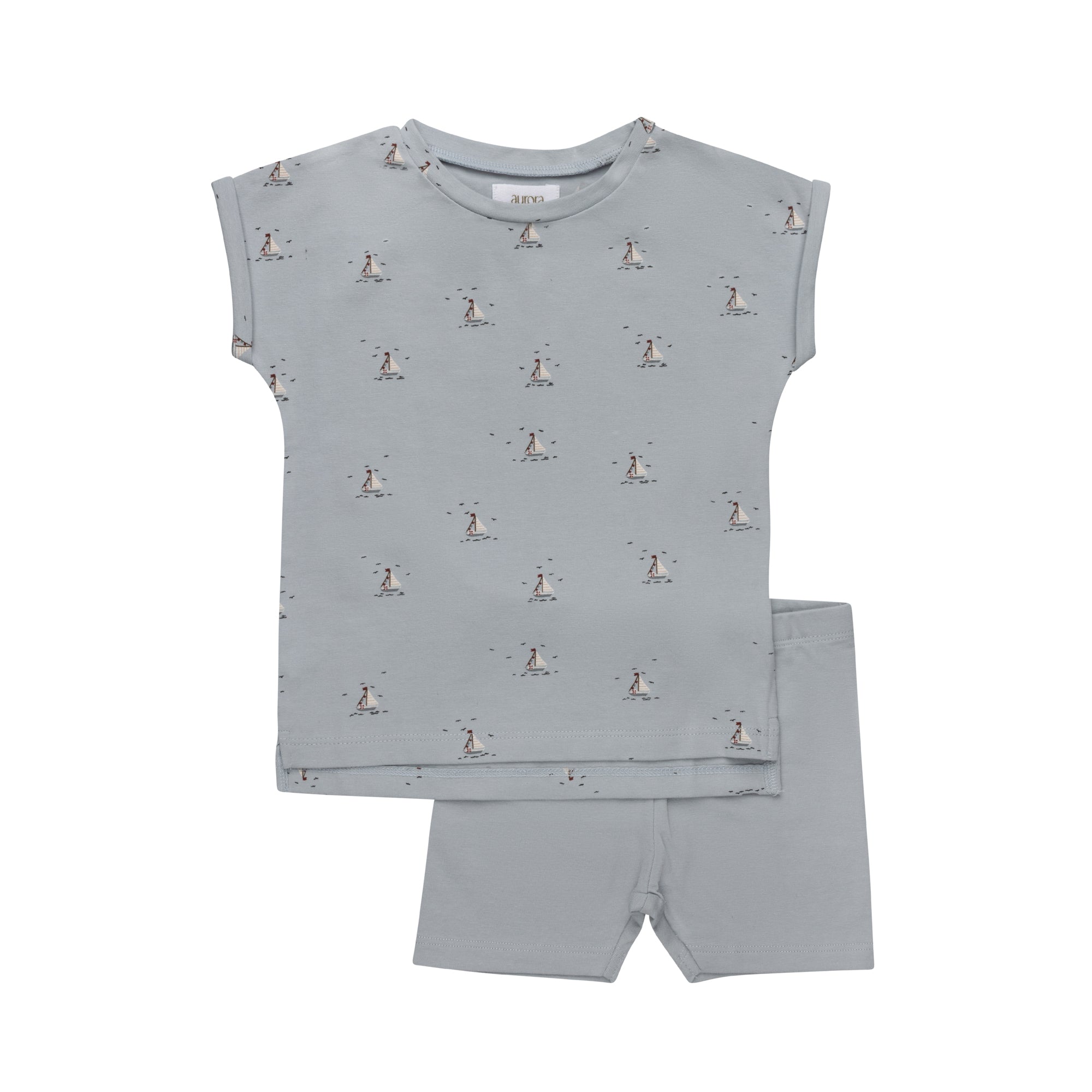 Boys Tee and Shorts – Ivory Blue – Nautical Print