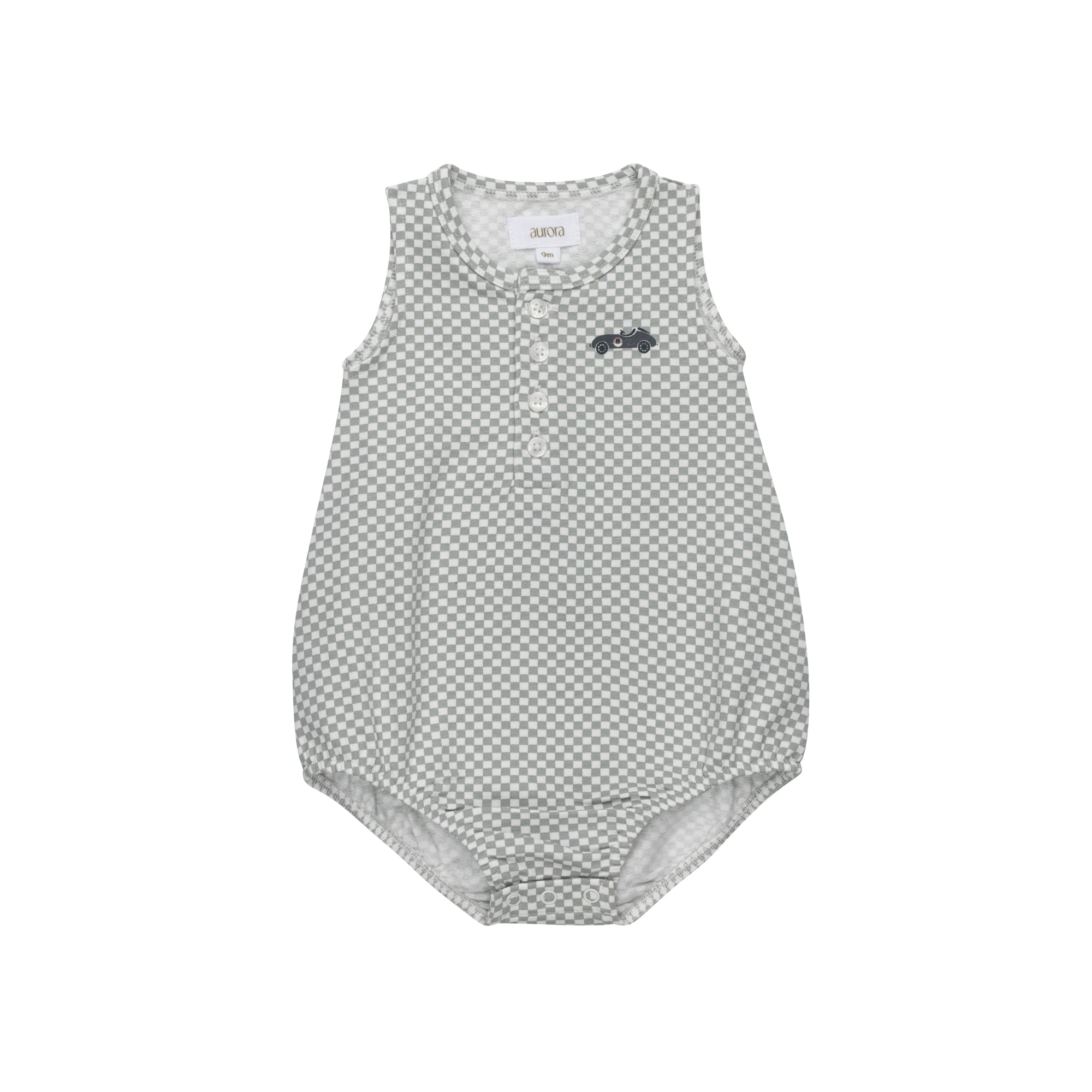 Boys Romper – Blue – Checked Race Car