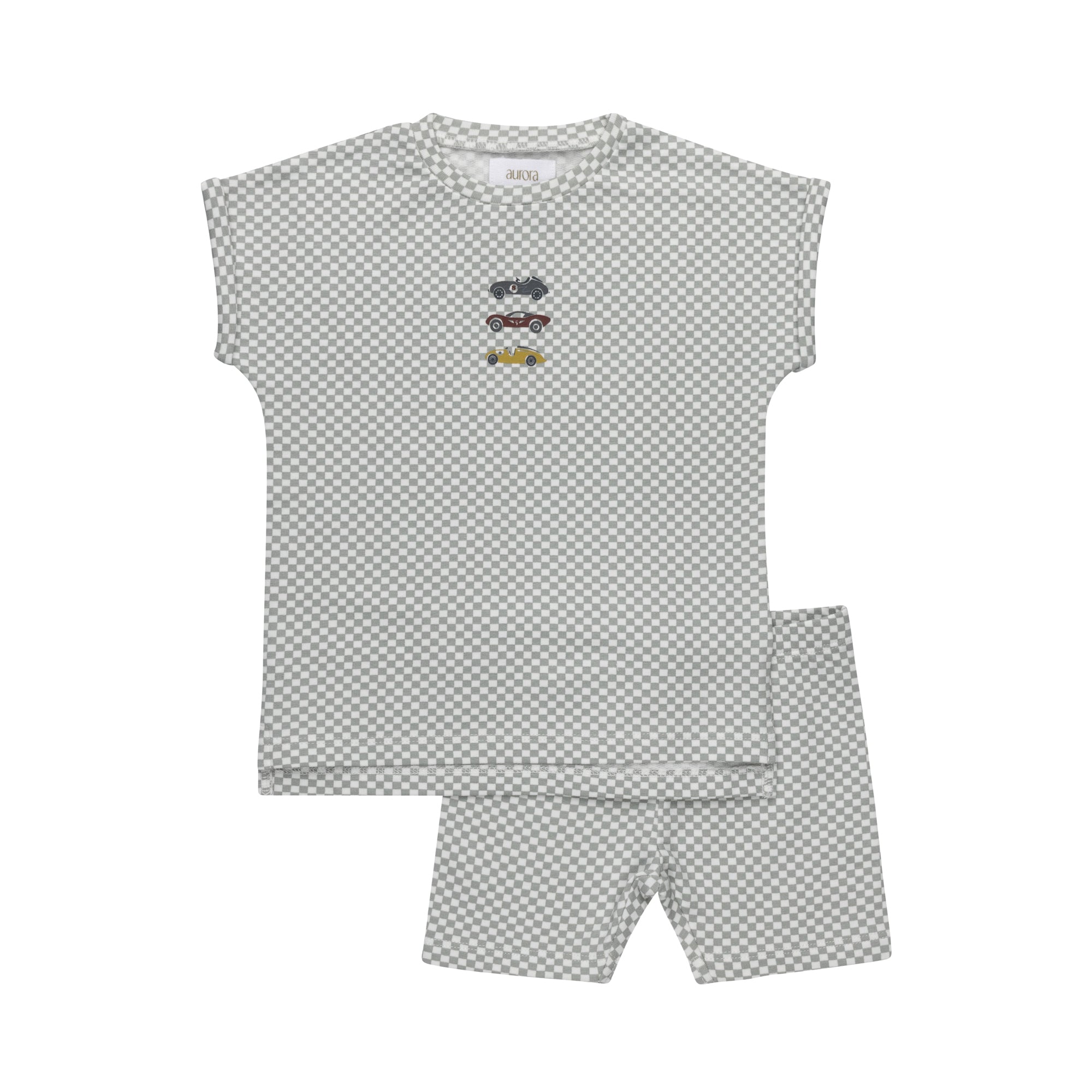 Boys Tee and Shorts – Blue – Checked Race Car