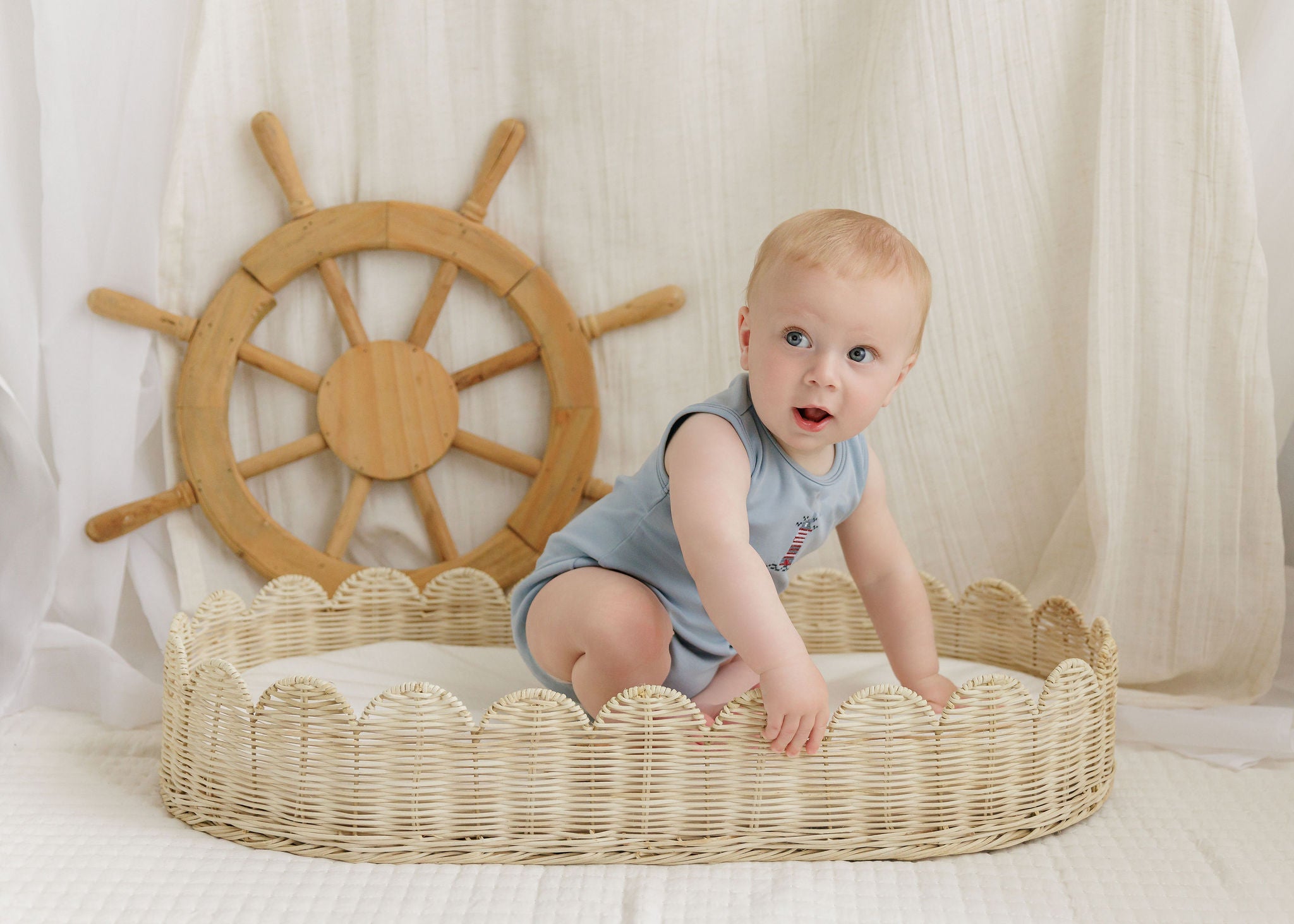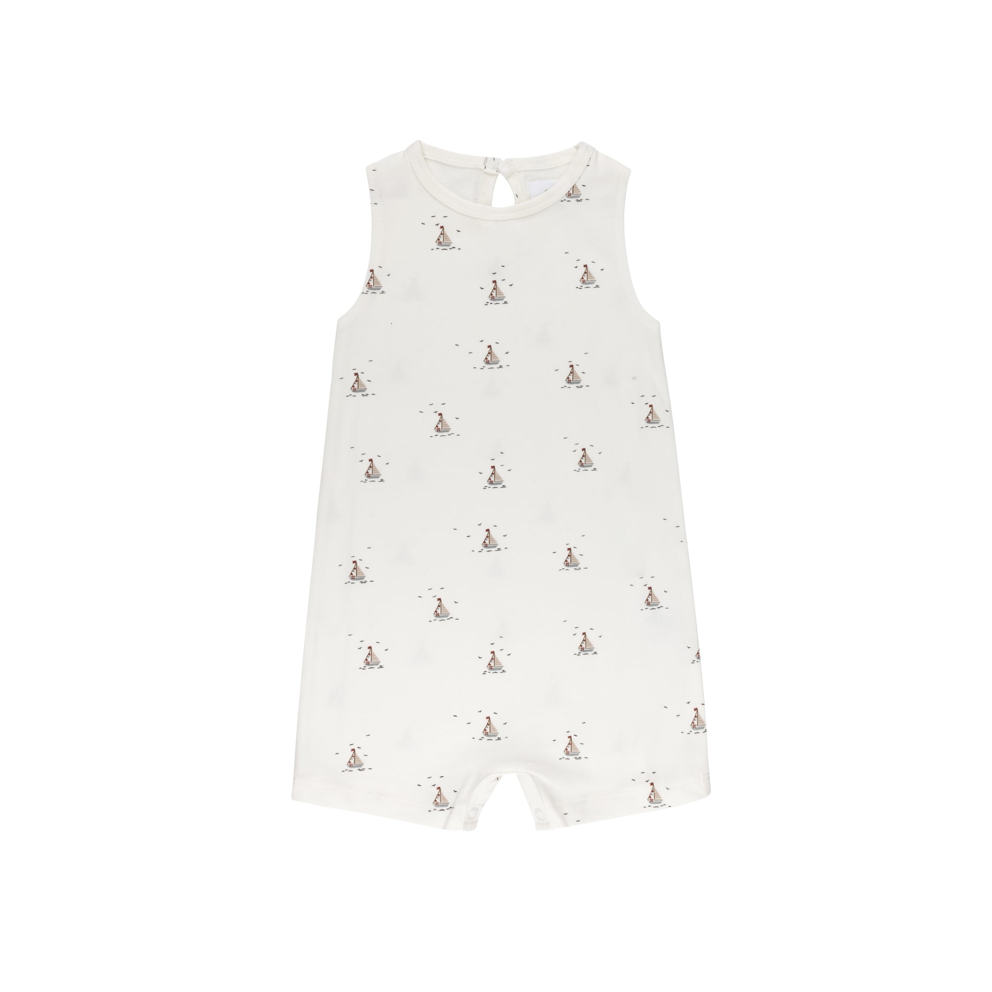 Boys Romper – Ivory Blue – Nautical Print