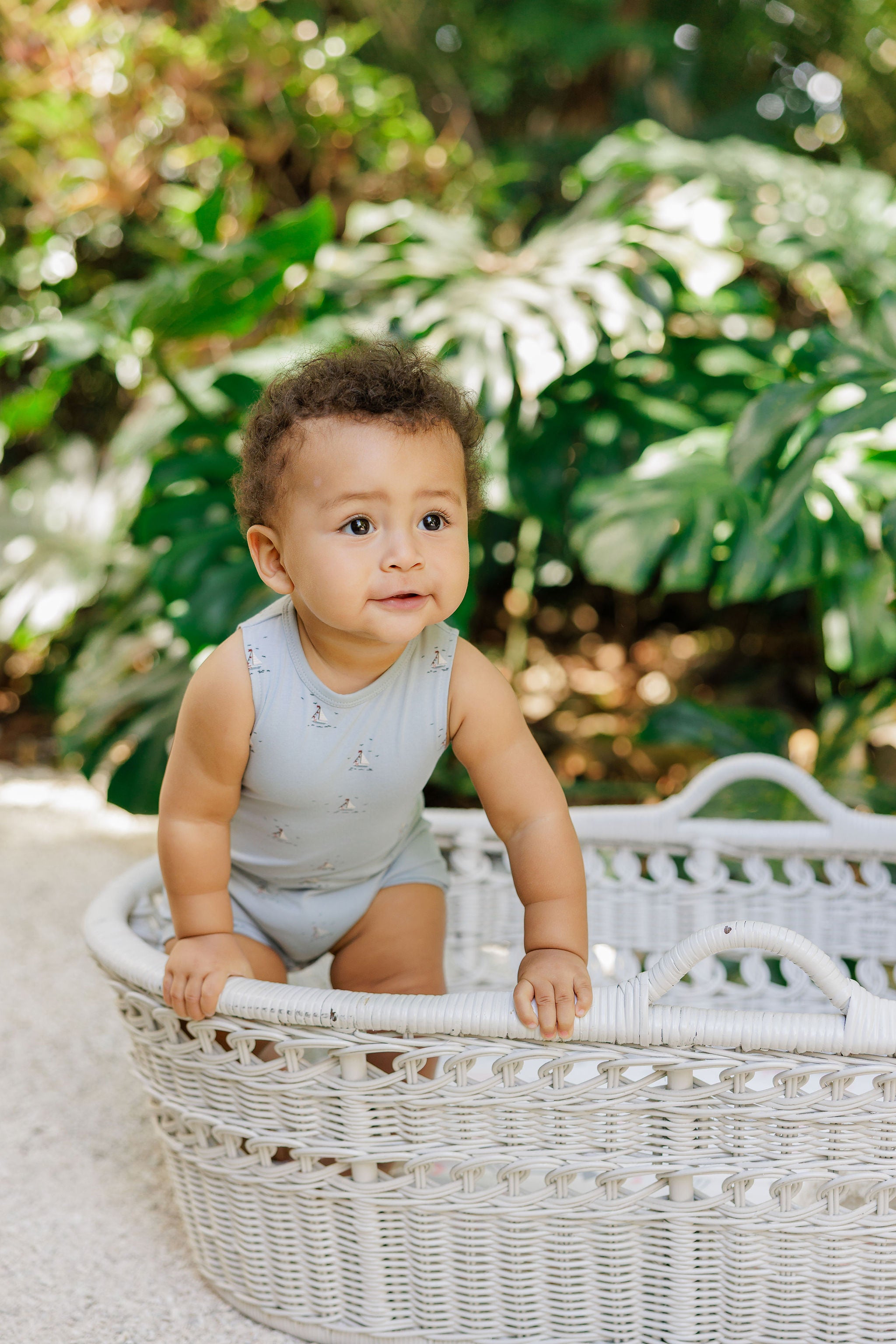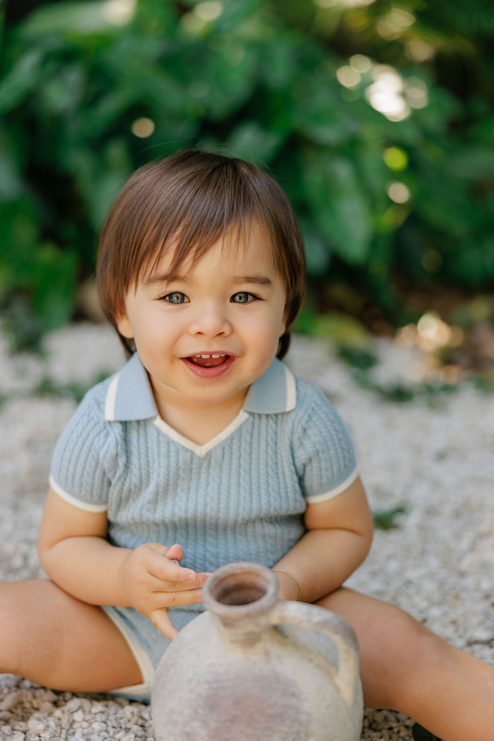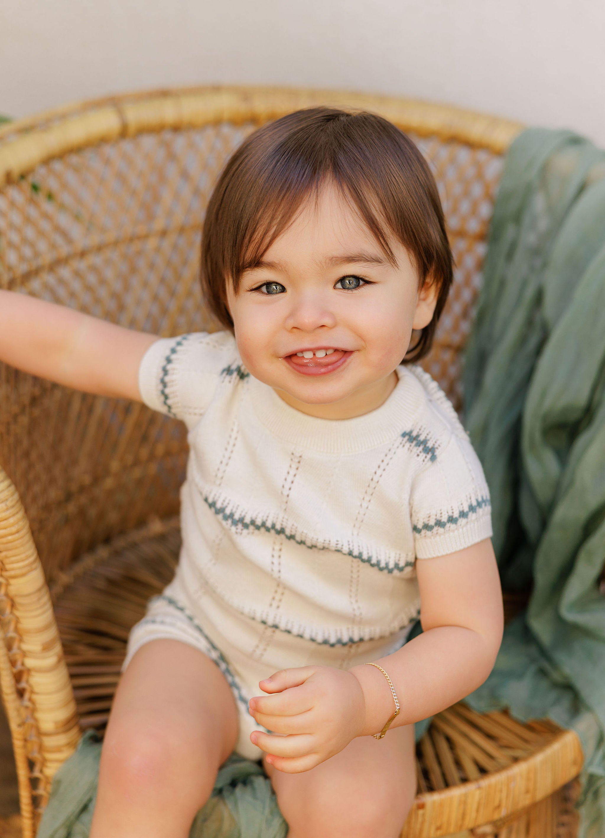 Boys Wave Knit Romper – Ivory/Sage – Holland Collection