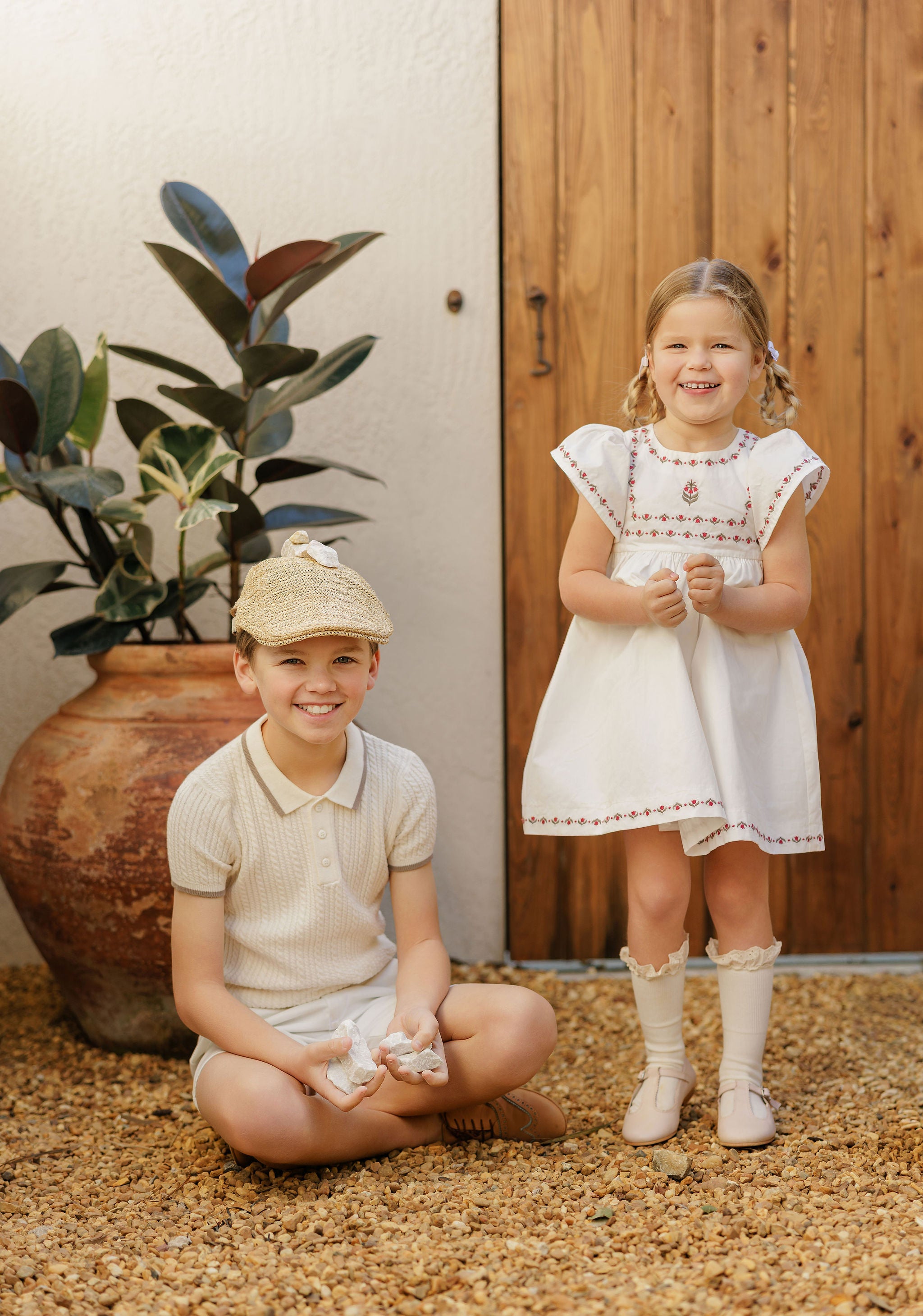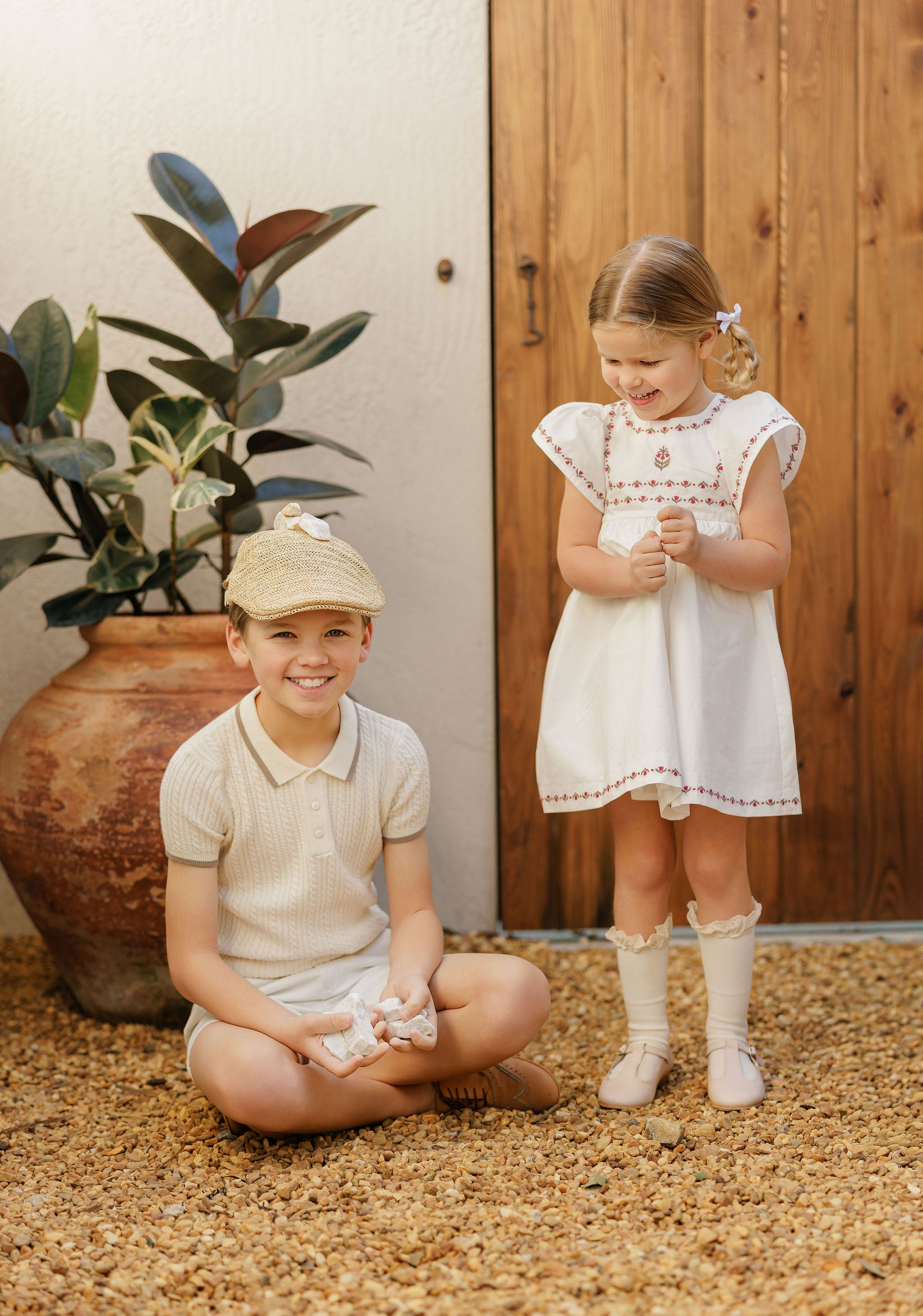 Boys Mesh Knit 2 Piece Set – Ivory – Storybook Collection
