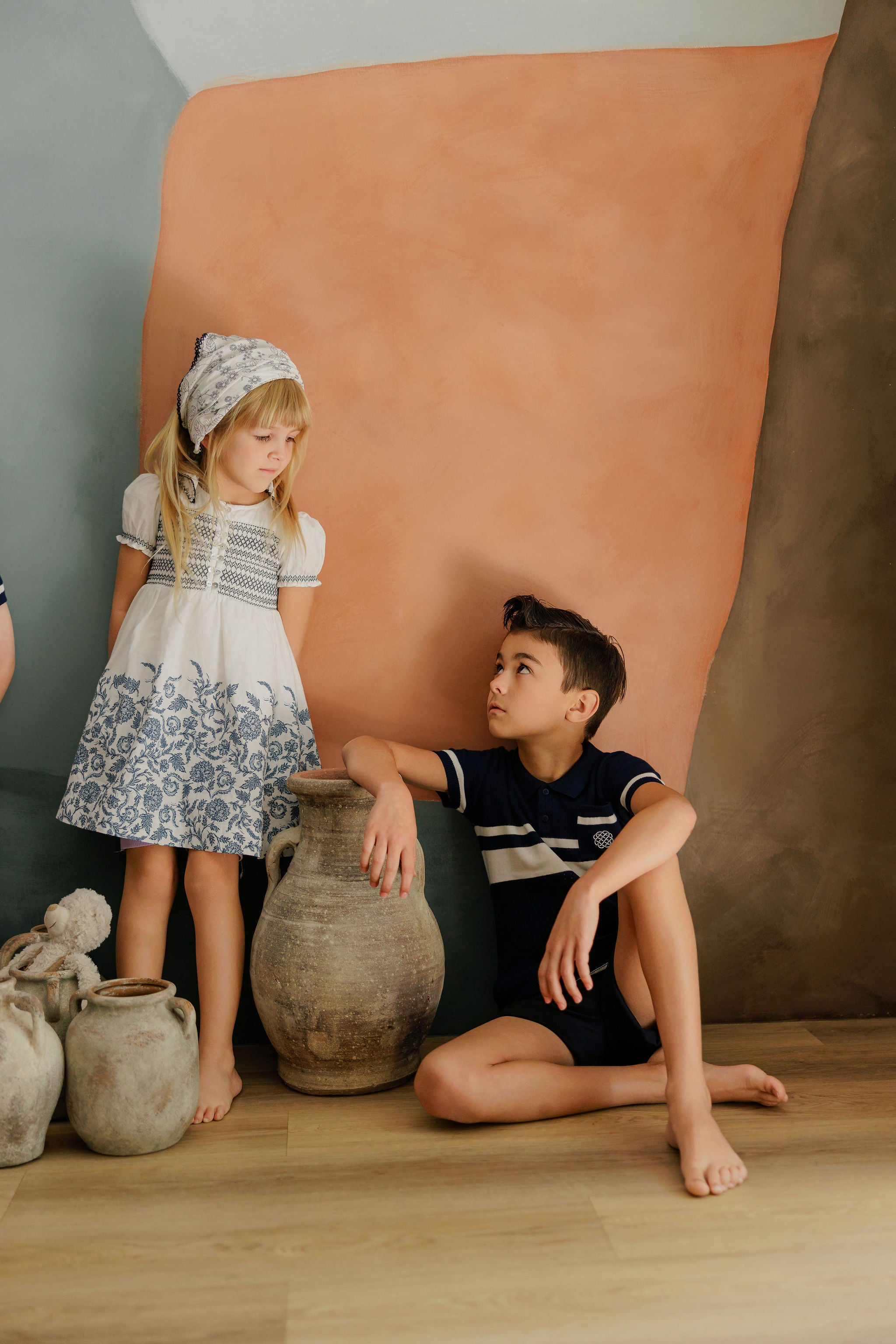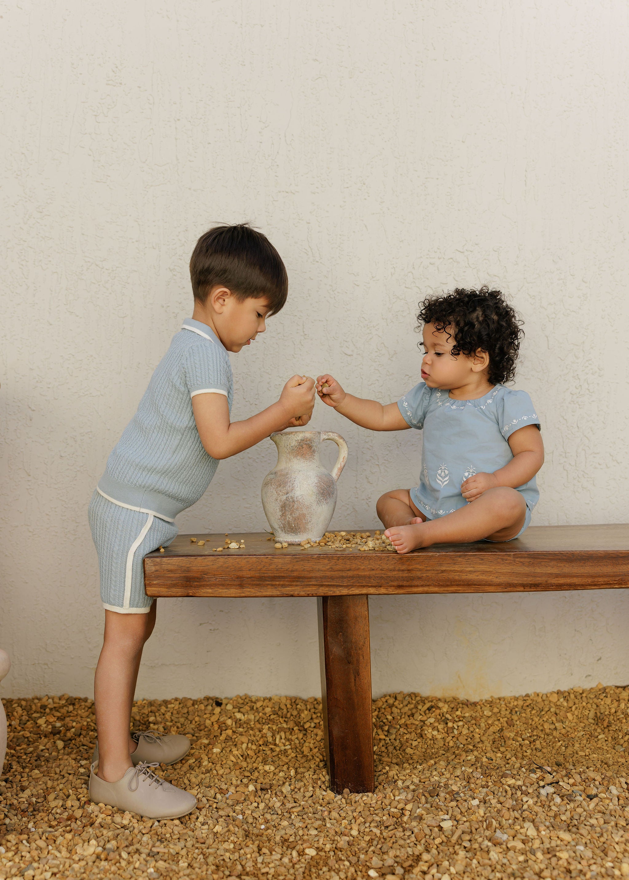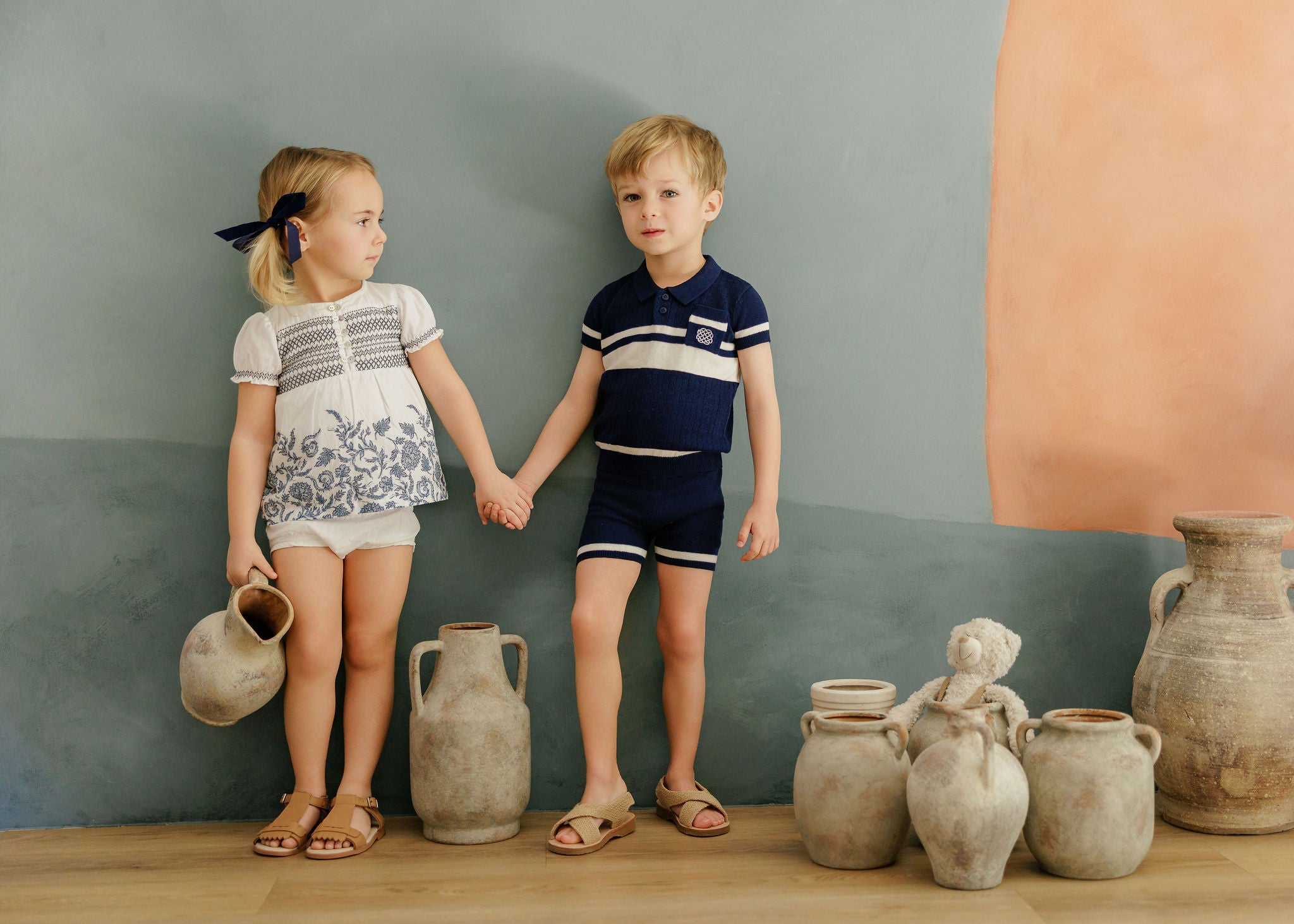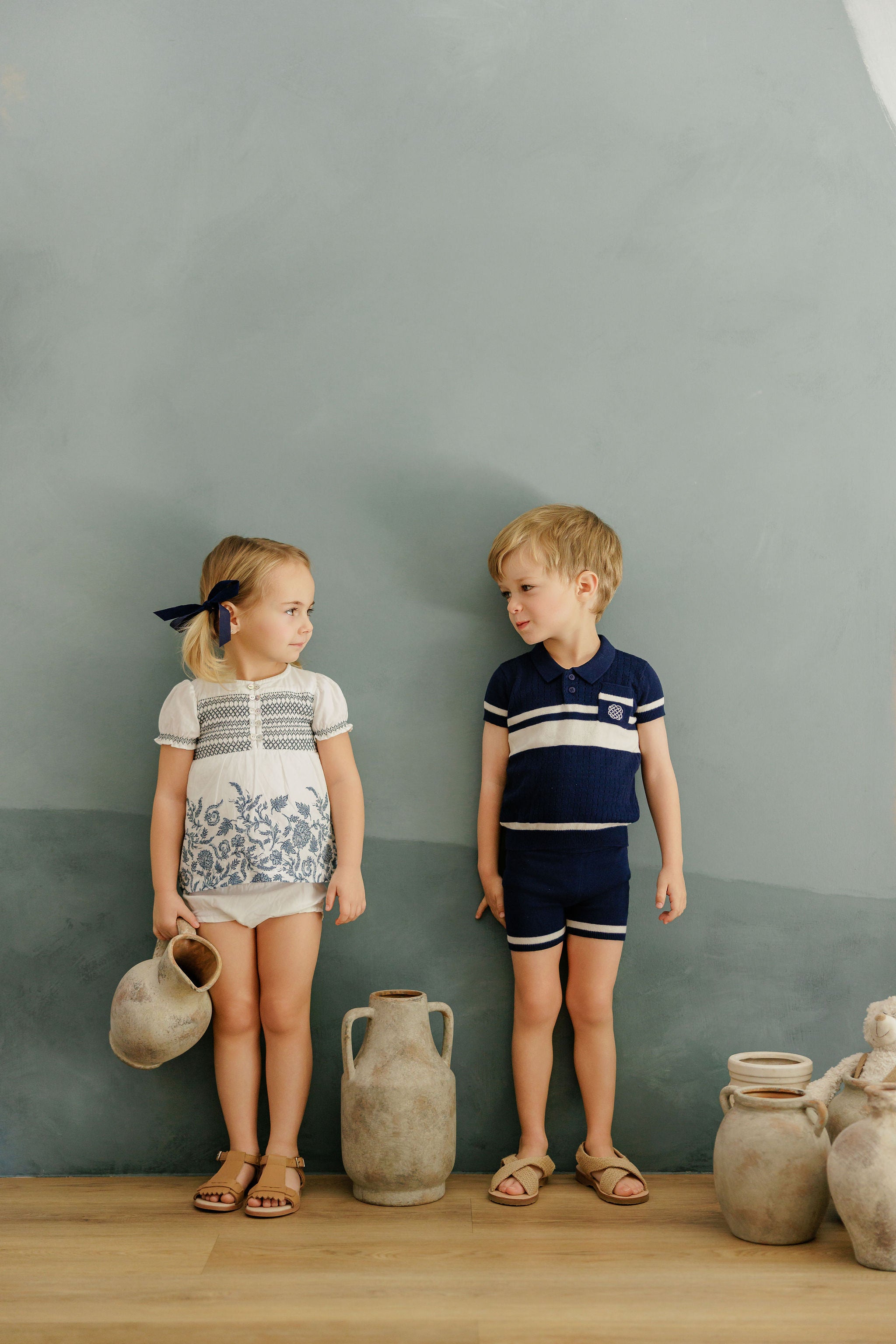 Boys Wave Knit 2 Piece Set – Blue/Ivory – Holland Collection