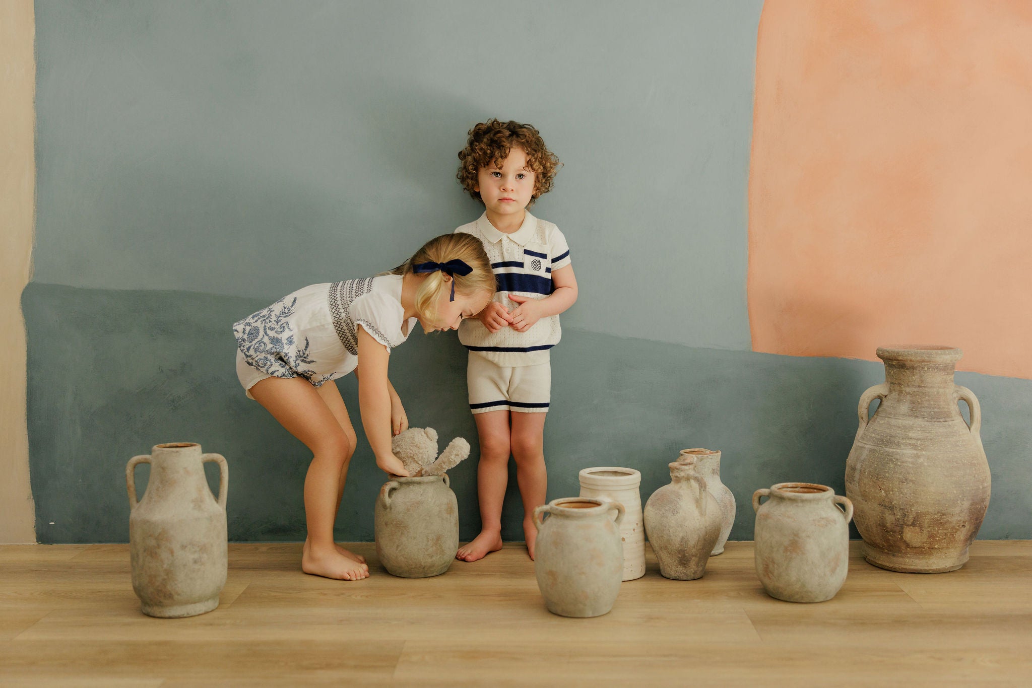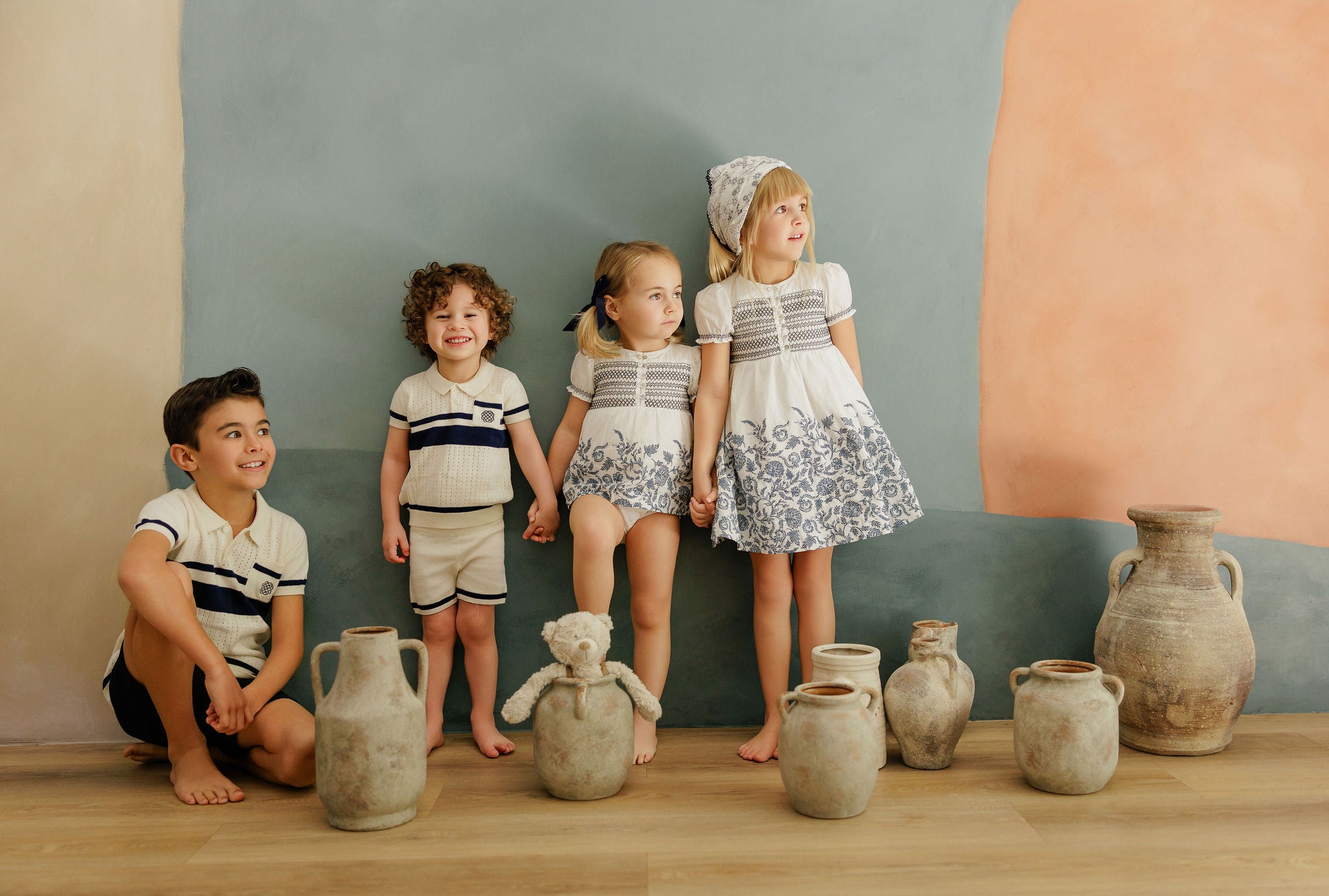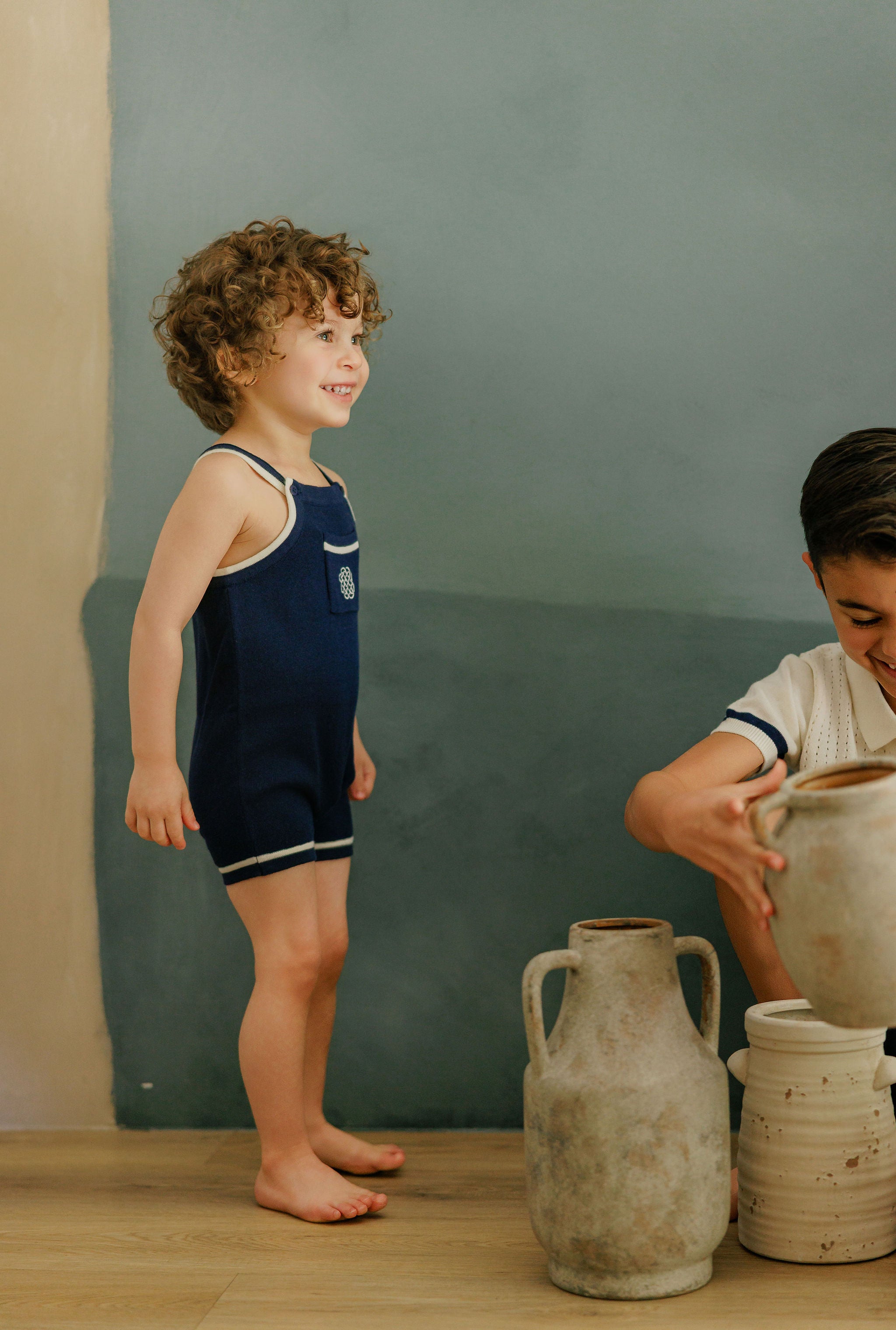 Boys Wave Knit Romper – Blue/Ivory – Holland Collection