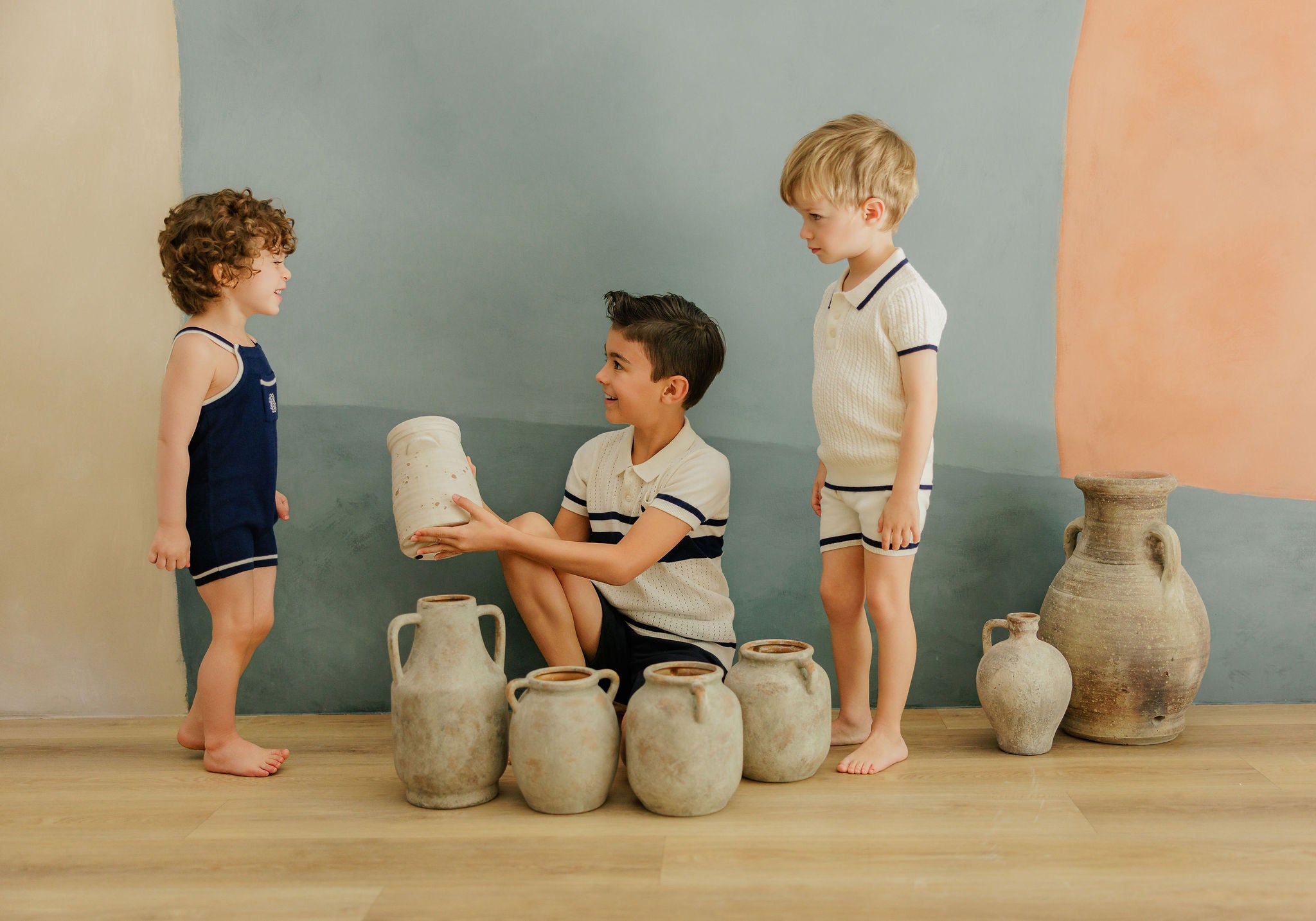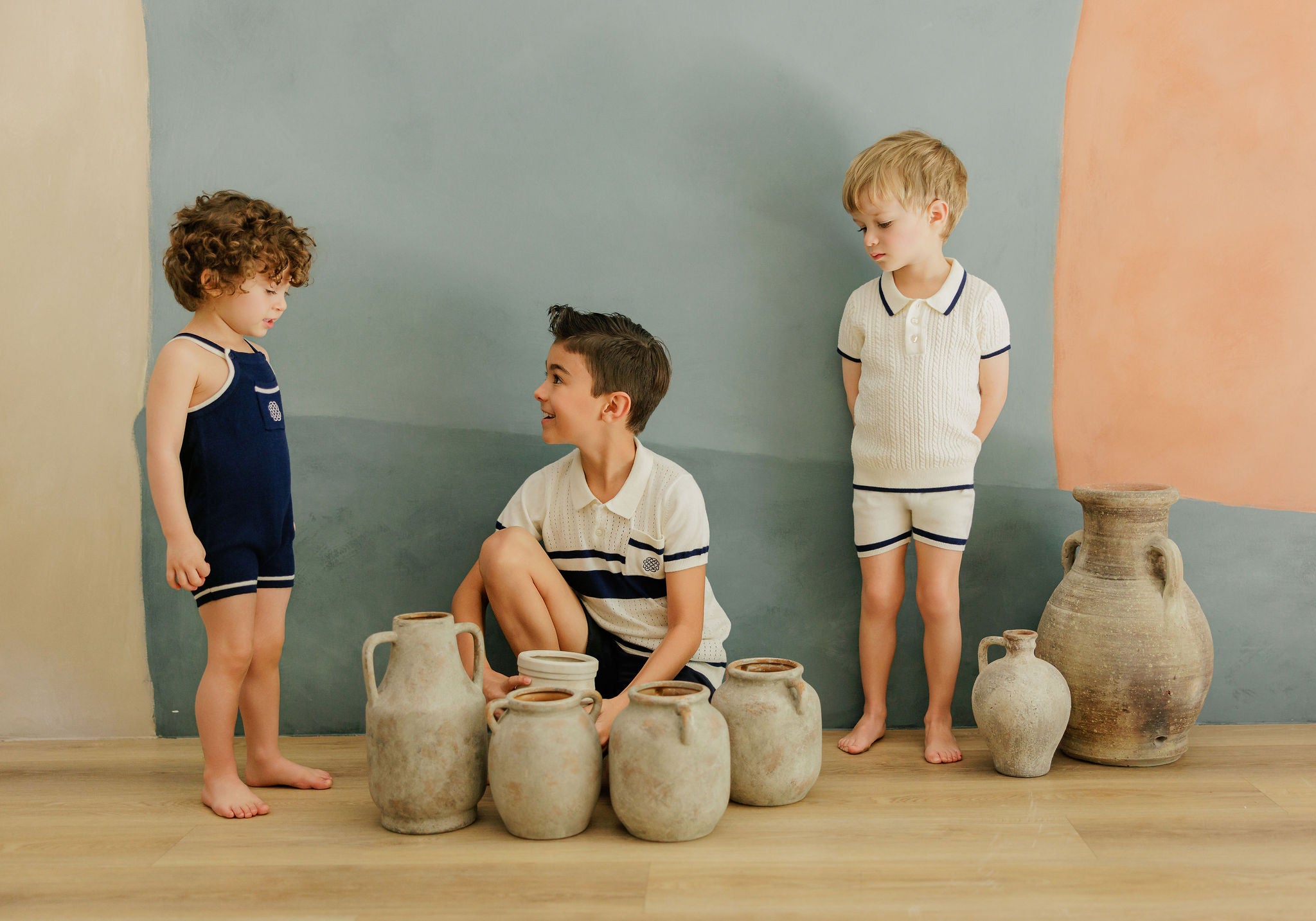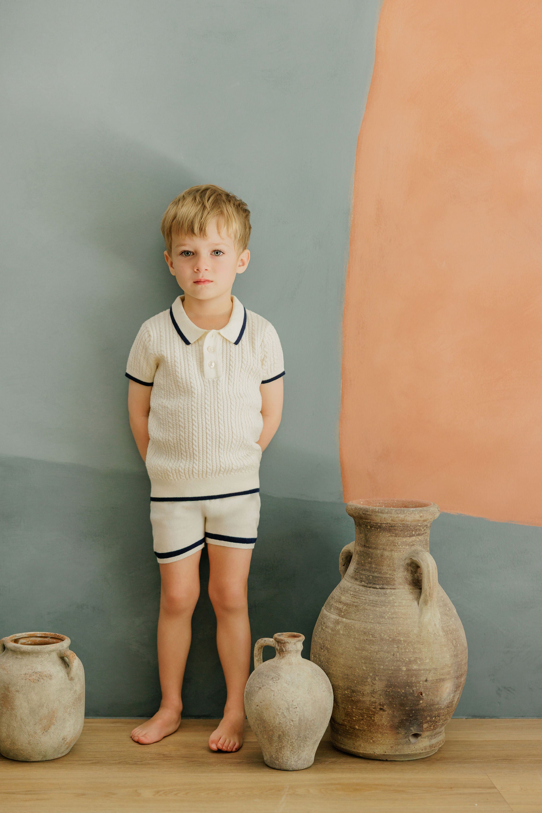Boys Wave Knit 2 Piece Set – Ivory/Sage – Holland Collection
