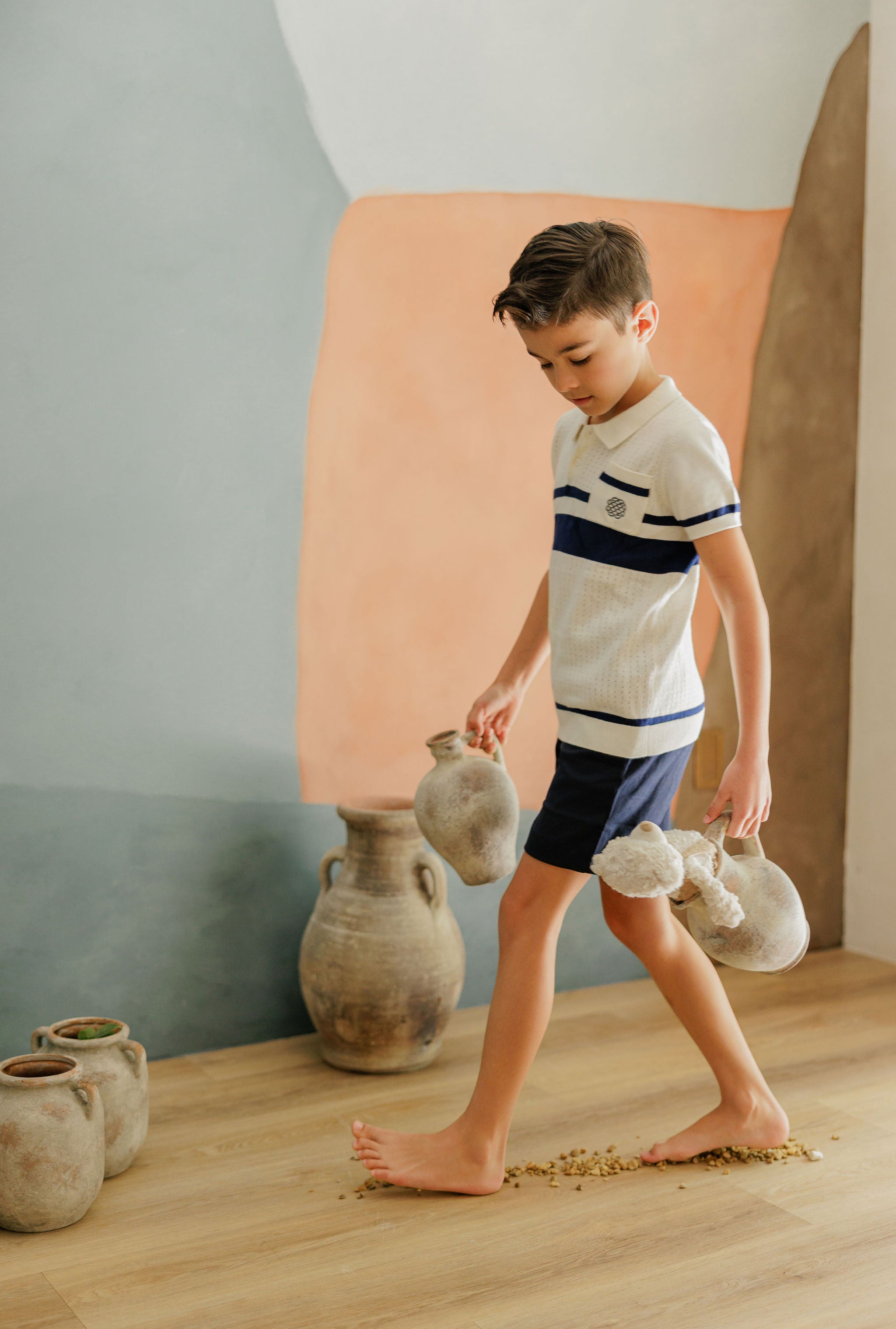 Boys Wave Knit Knit Top – Ivory/Sage – Holland Collection