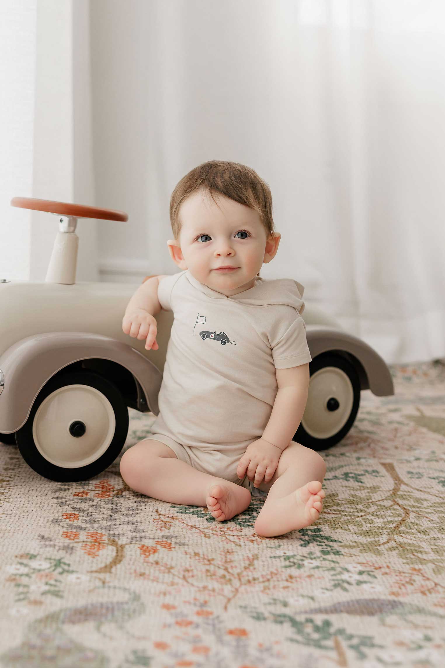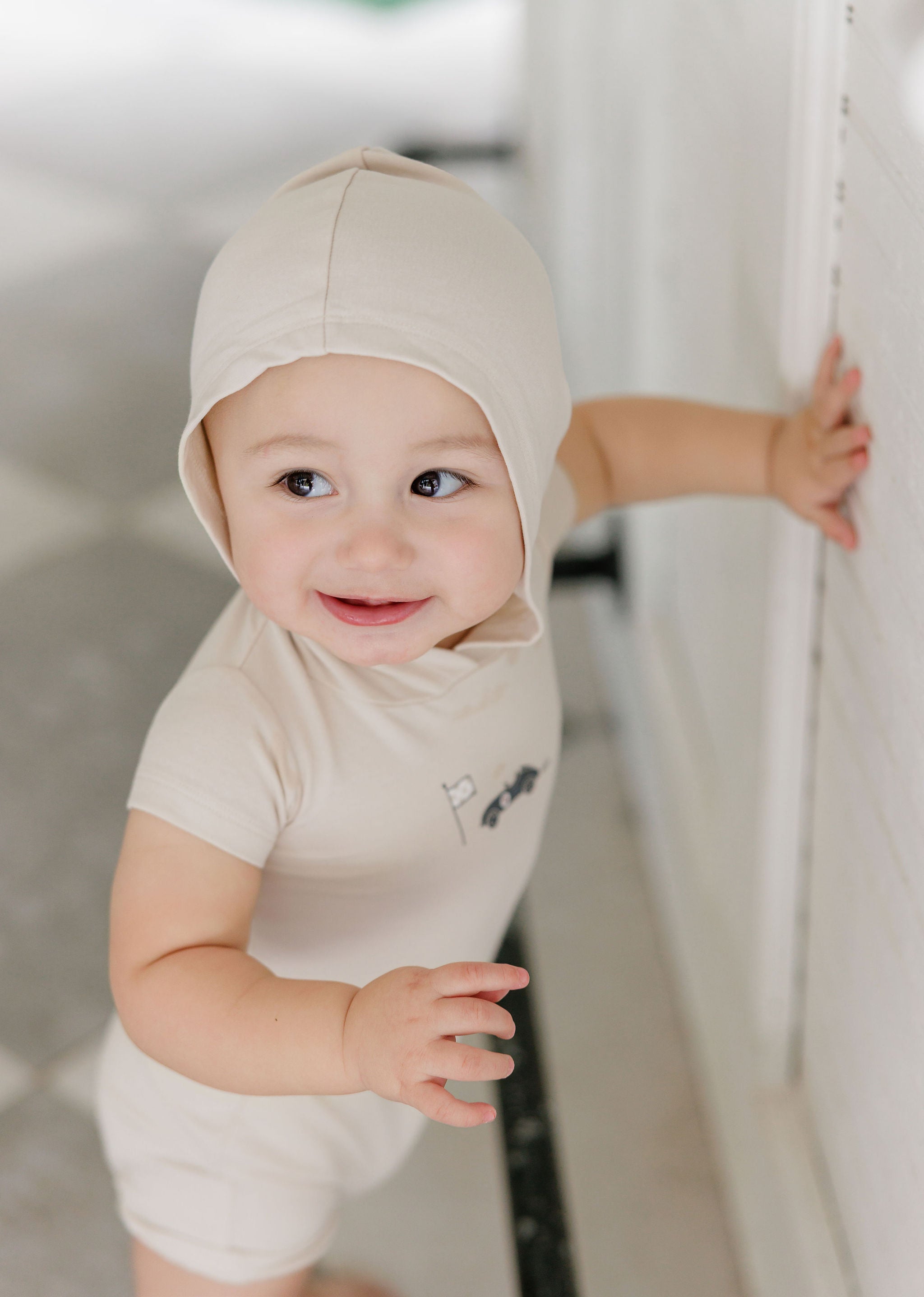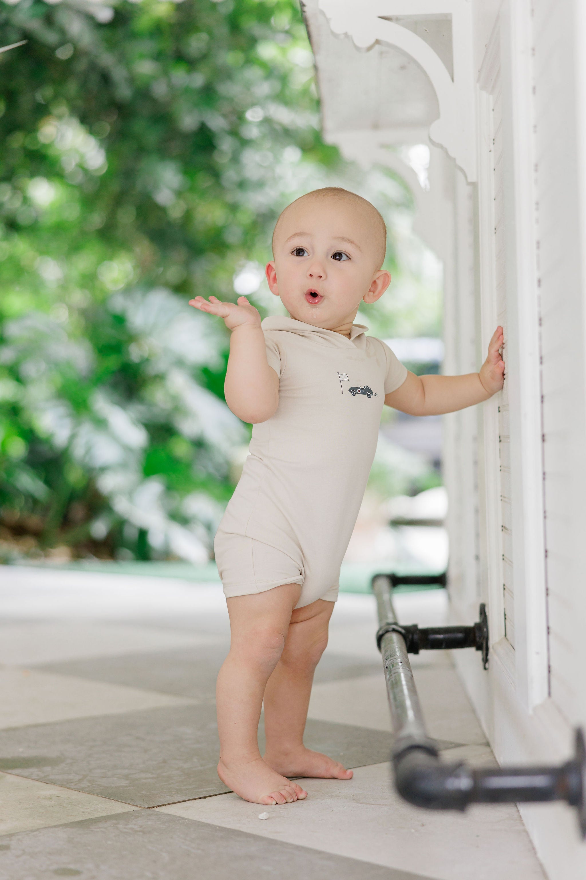 Boys Romper – Tan – Race Car