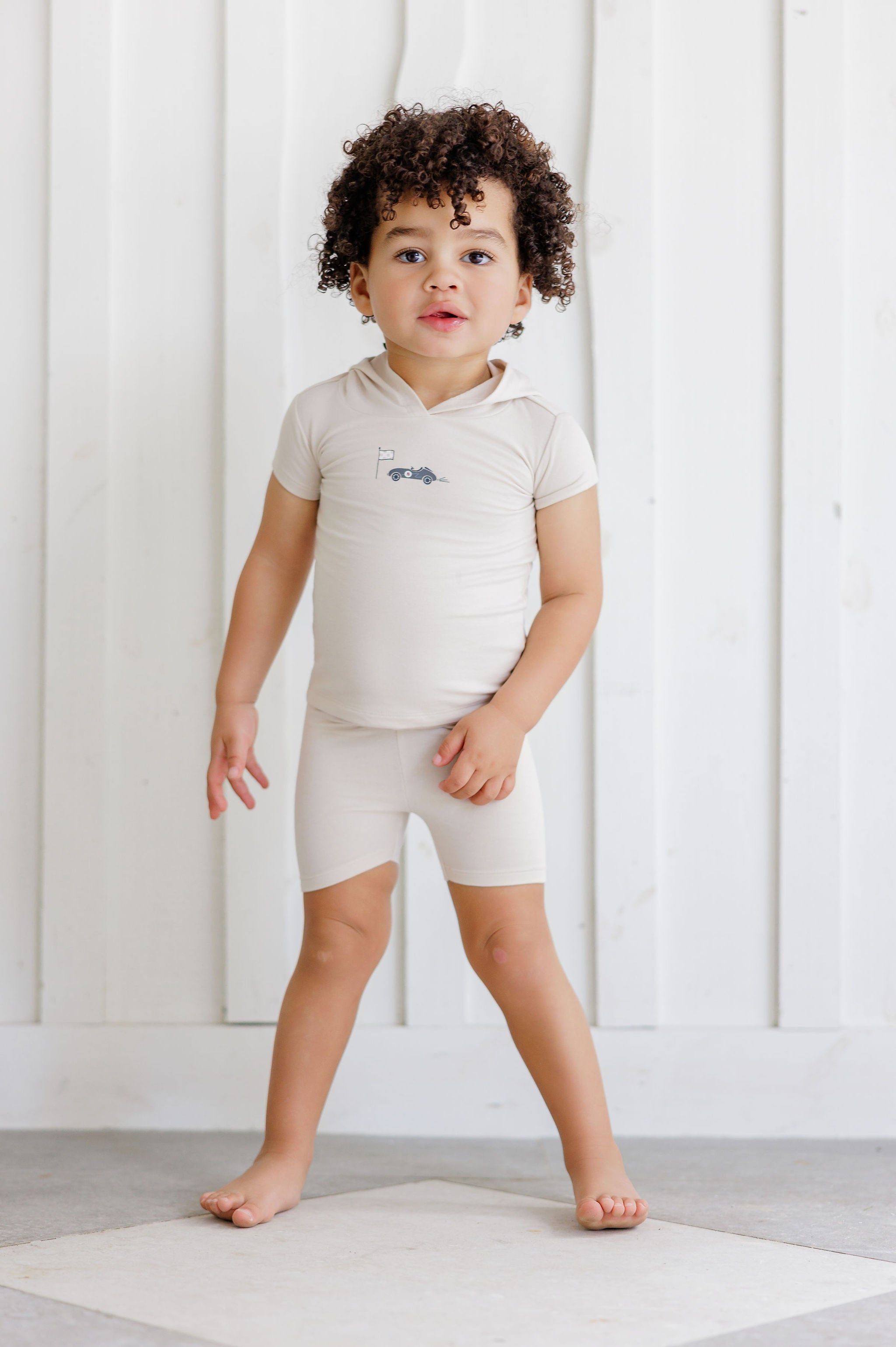 Boys Tee and Shorts – Tan – Race Car