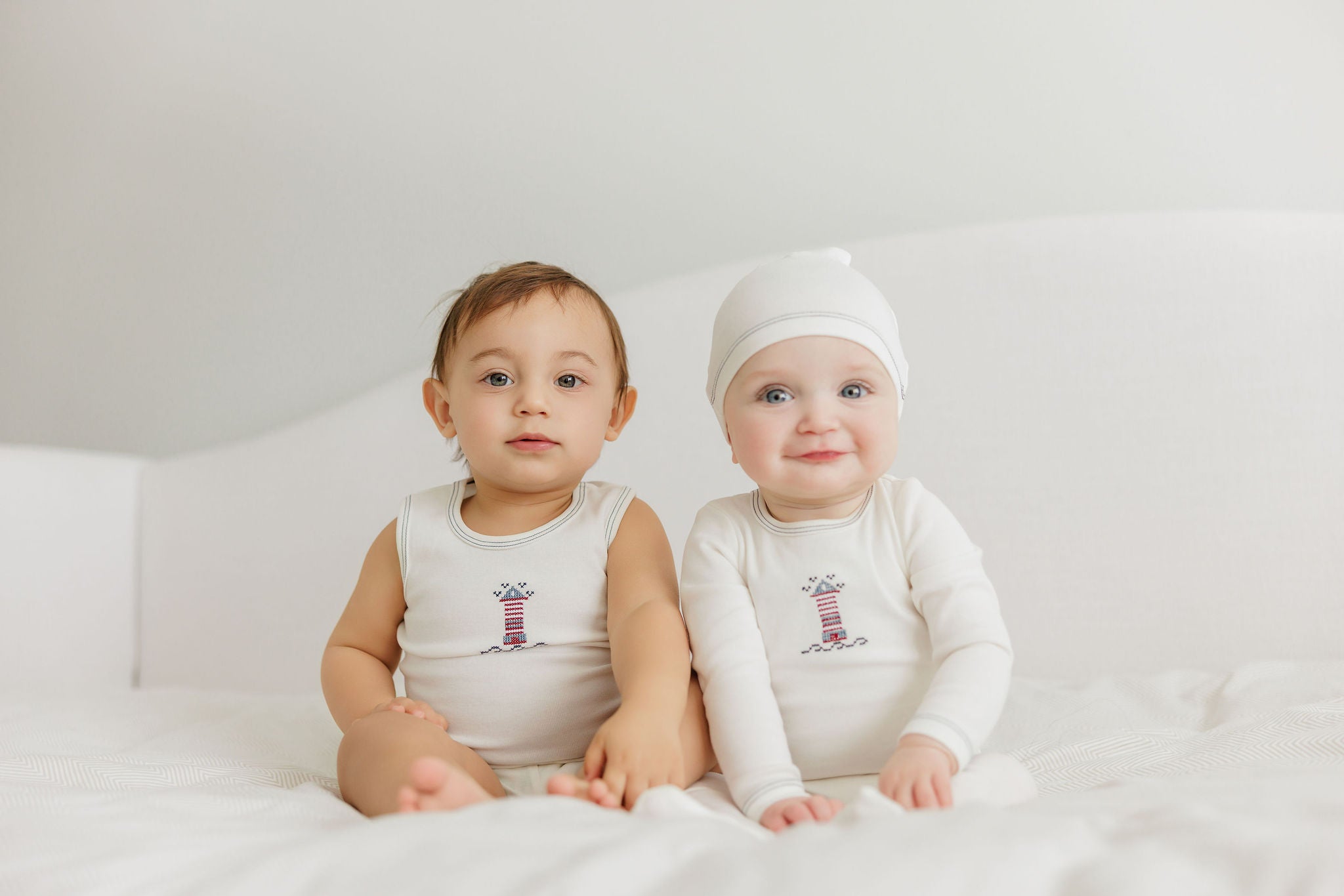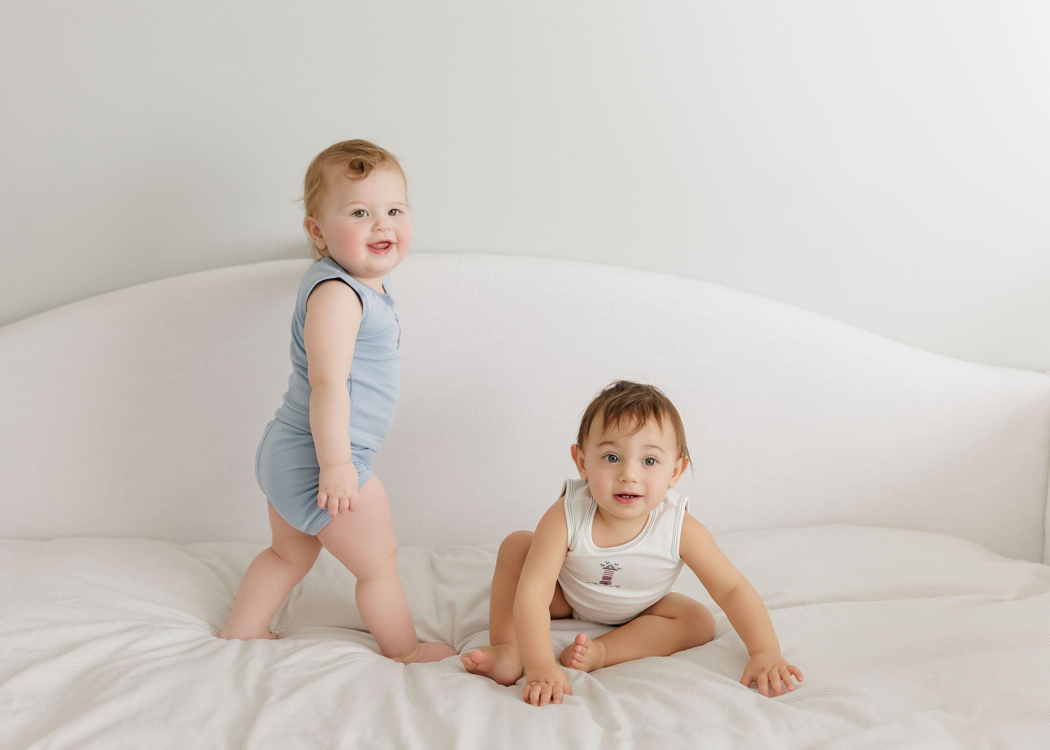 Boys Tank and Shorts – Ivory Blue – Cross Stitch Lighthouse