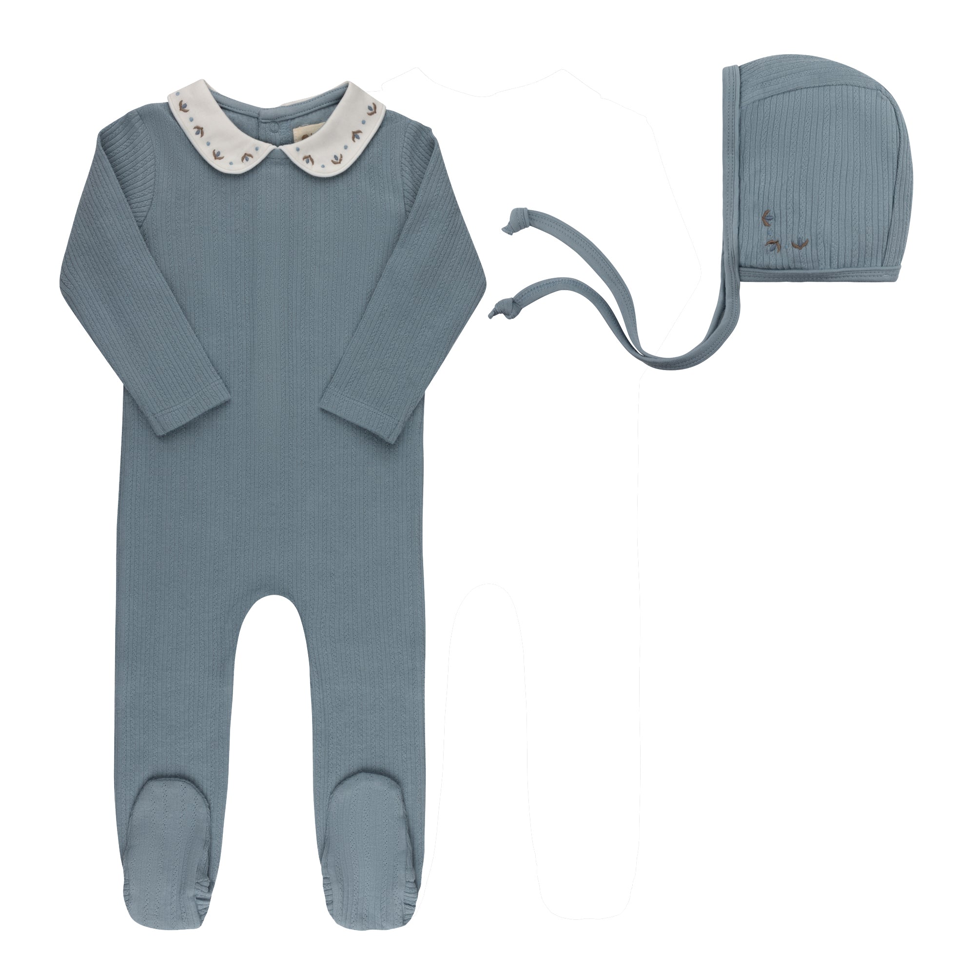 Baby Boy Footie and Bonnet – Blue – Keepsake Collection