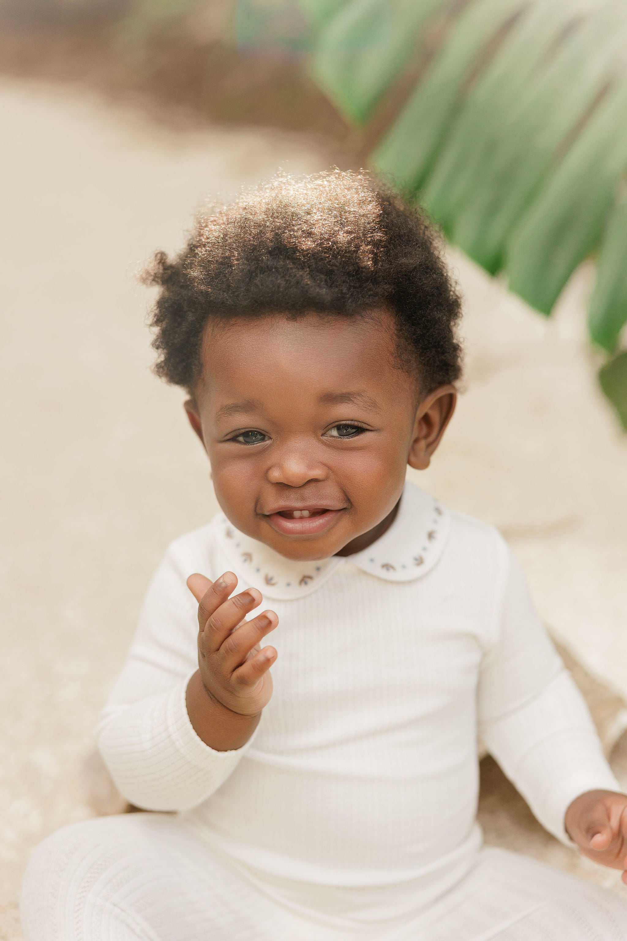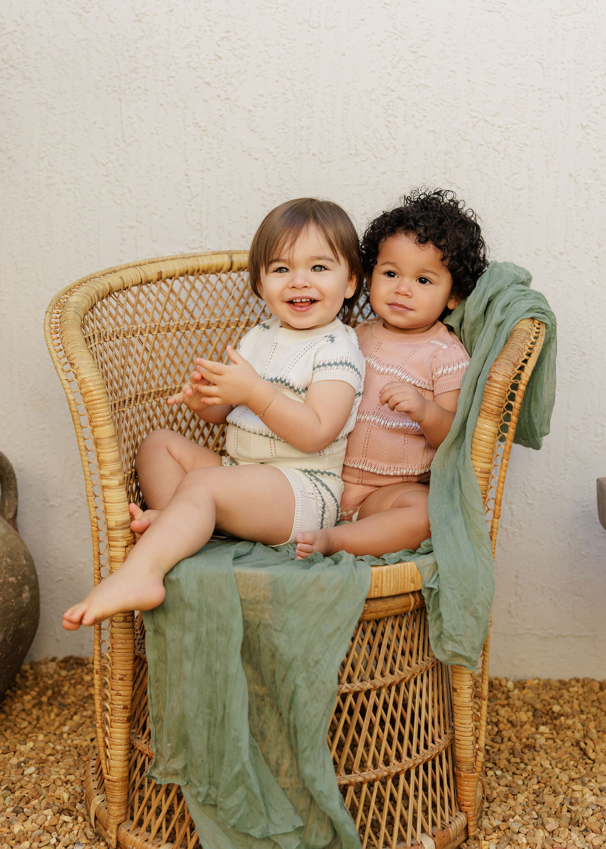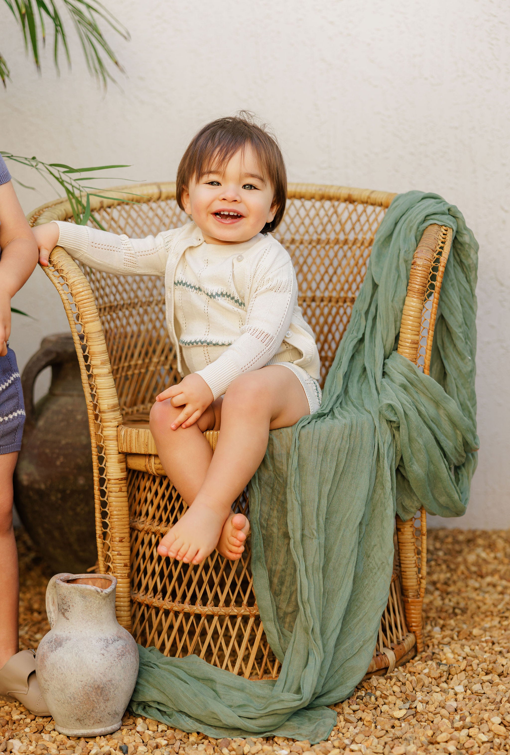 Boys Wave Knit Romper – Ivory/Sage – Holland Collection