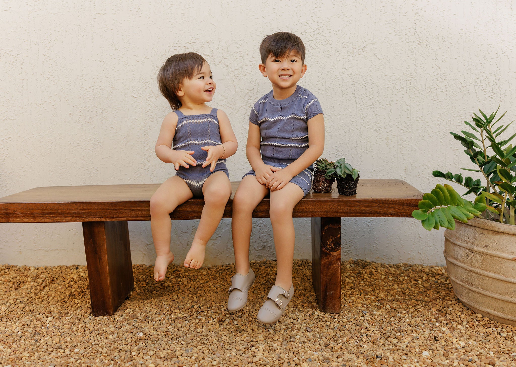 Boys Wave Knit Romper – Blue/Ivory – Holland Collection