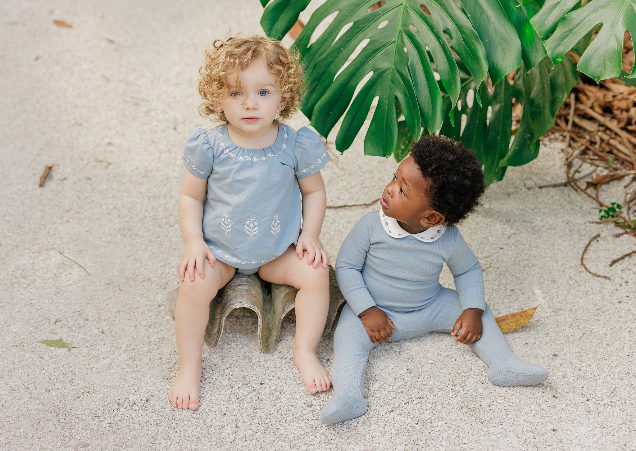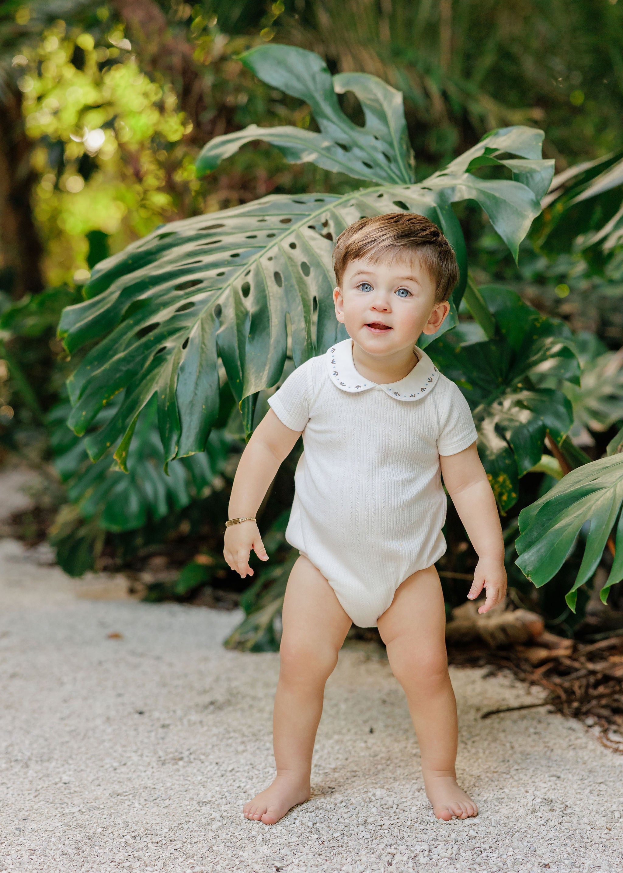 Boys Romper – Ivory/Blue – Keepsake Collection