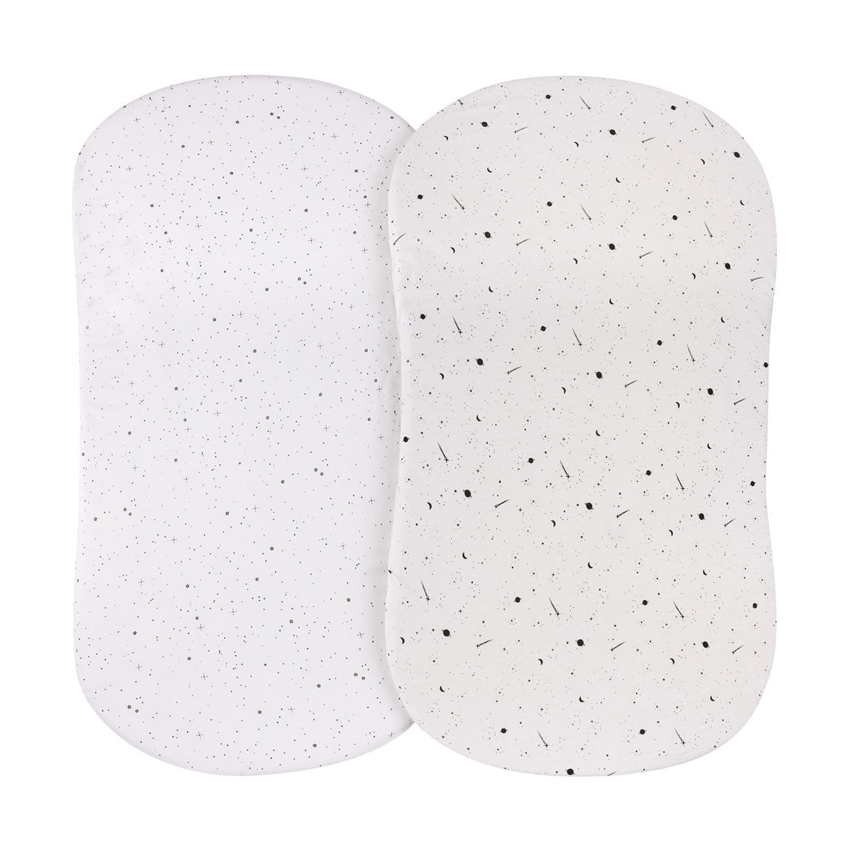 - Flexible-Fit Bassinet Sheet 2-Pack for Baby Boy or Girl in a Black & White Celestial Prints bundled in our charmingly cute and compact packaging, this set makes for the perfect baby shower gift!