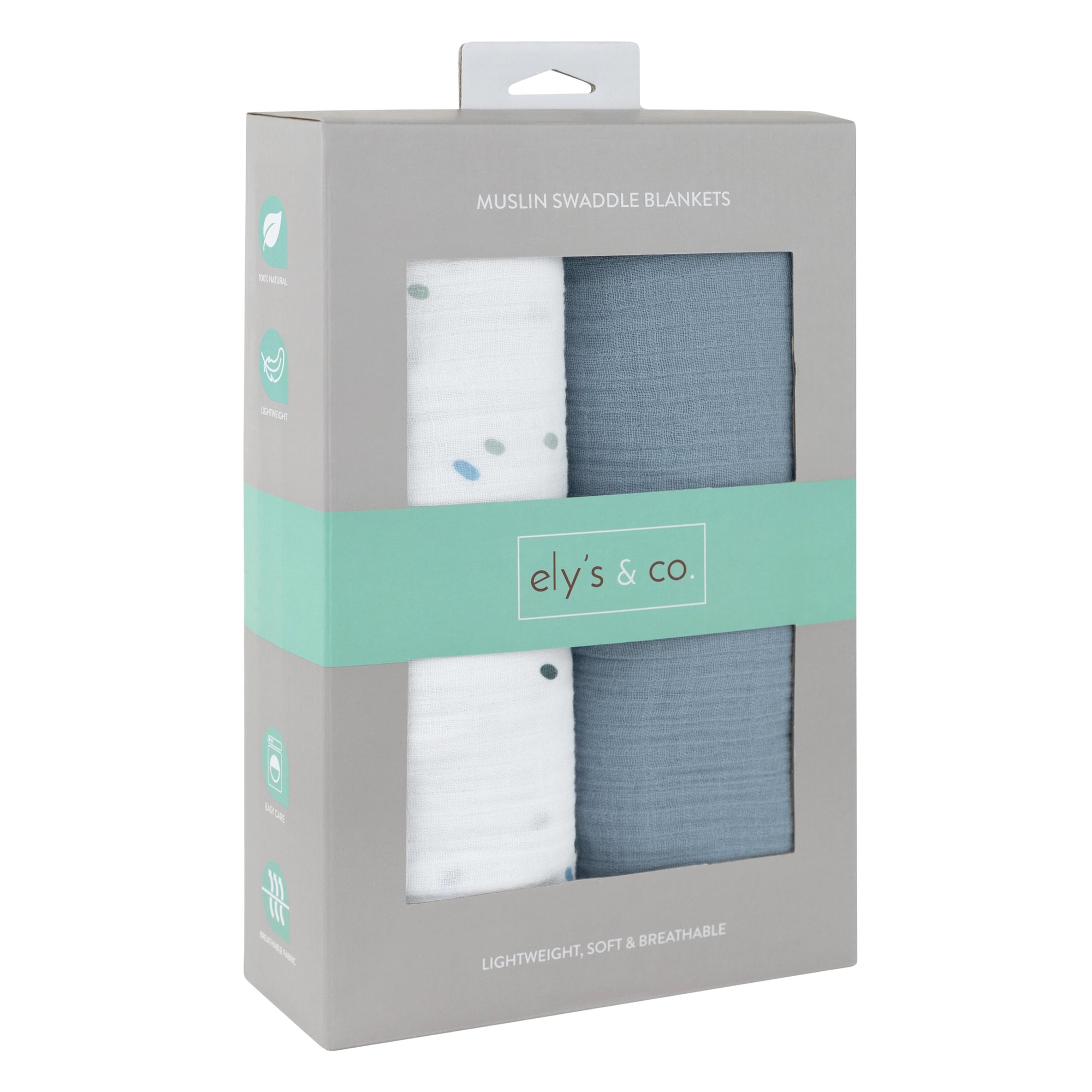 Looking for the perfect swaddle that blends softness, breathability, and versatility? Ely’s & Co. 2-Pack Blue Raindrops Cotton Muslin Swaddle Blankets deliver all that and more. Each generous 47″ × 47″ pre-washed blanket wraps your baby in lightweight comfort, featuring one serene ocean-blue hue and one charming raindrop print designed to calm and delight.