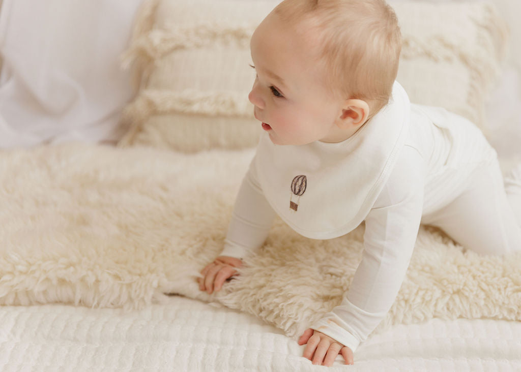 Wrap your little one in cozy comfort with the French Terry Hot Air Balloon Collection in Ivory. Crafted from soft, breathable fabric, this collection ensures gentle warmth and ease of movement. The charming hot air balloon design adds a playful touch to everyday wear, making it perfect for both snug naps and lively playtime. Delight in quality and style made for your baby’s comfort and your peace of mind.