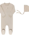 Elevate your baby's wardrobe the Organic French Terry Footie and Bonnet from the Bird Collection. Made with soft, stretchy, organic cotton, this set features a charming watercolor bird applique and a matching bonnet for a sophisticated look.