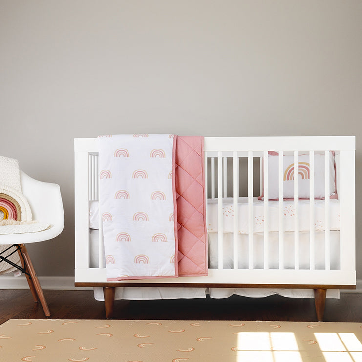 Ely’s and Co specialty crib set provides a cozy napping and resting space for your baby, who spends most of the day sleeping! And at the end of a long, fulfilling day with your little one, bring your baby to rest once again in this inviting, peaceful space. Knowing your baby is encased in the very best gives you the respite you need to gear up for another beautiful day!