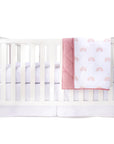 Dusty Pink Rainbow Three Piece Baby Crib Set - Crib Sheet, Blanket & Skirt